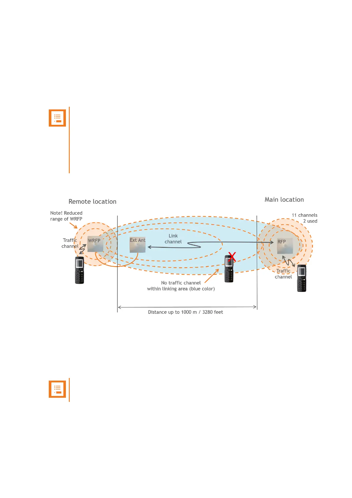 Inside the area named "radio link" there is no radio coverage for handsets.