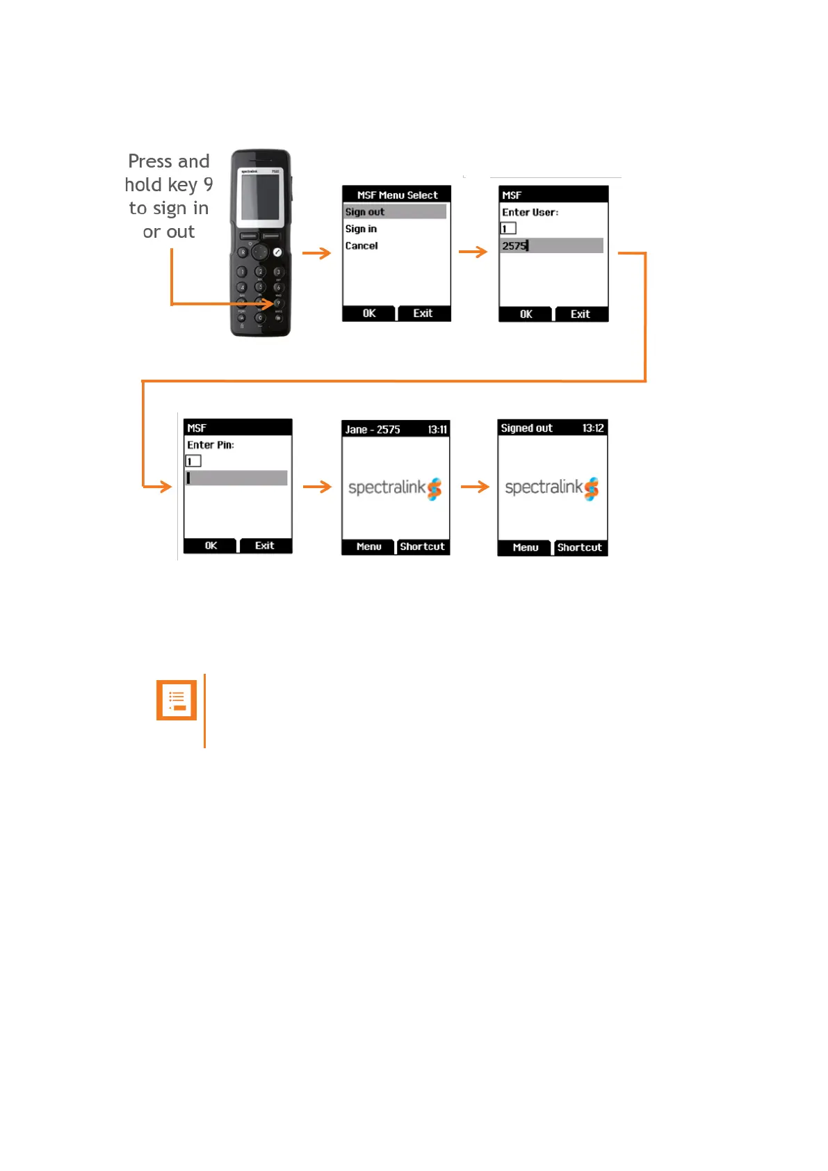 7. Long press key 9 to sign out. The standby text will show signed out upon successful sign out.