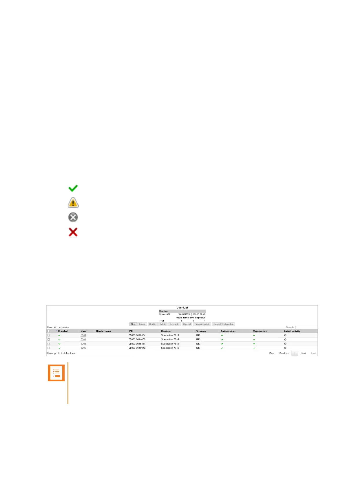 l Subscription - indicates if handset is subscribed to a Spectralink IP-DECT/Virtual IP-DECT
