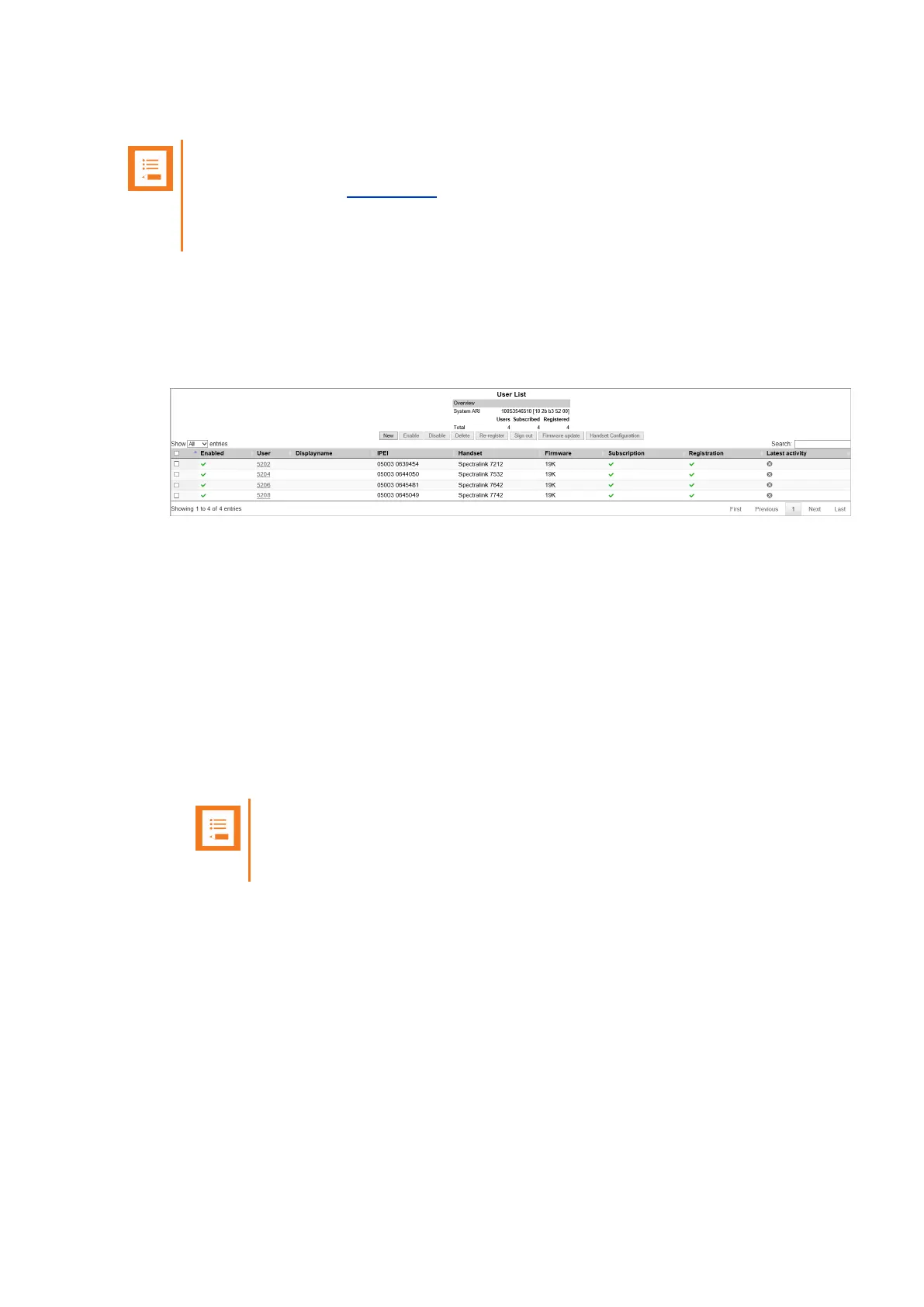 2. On the UserList page, select the relevant user (the handset must be subscribed to the sys-