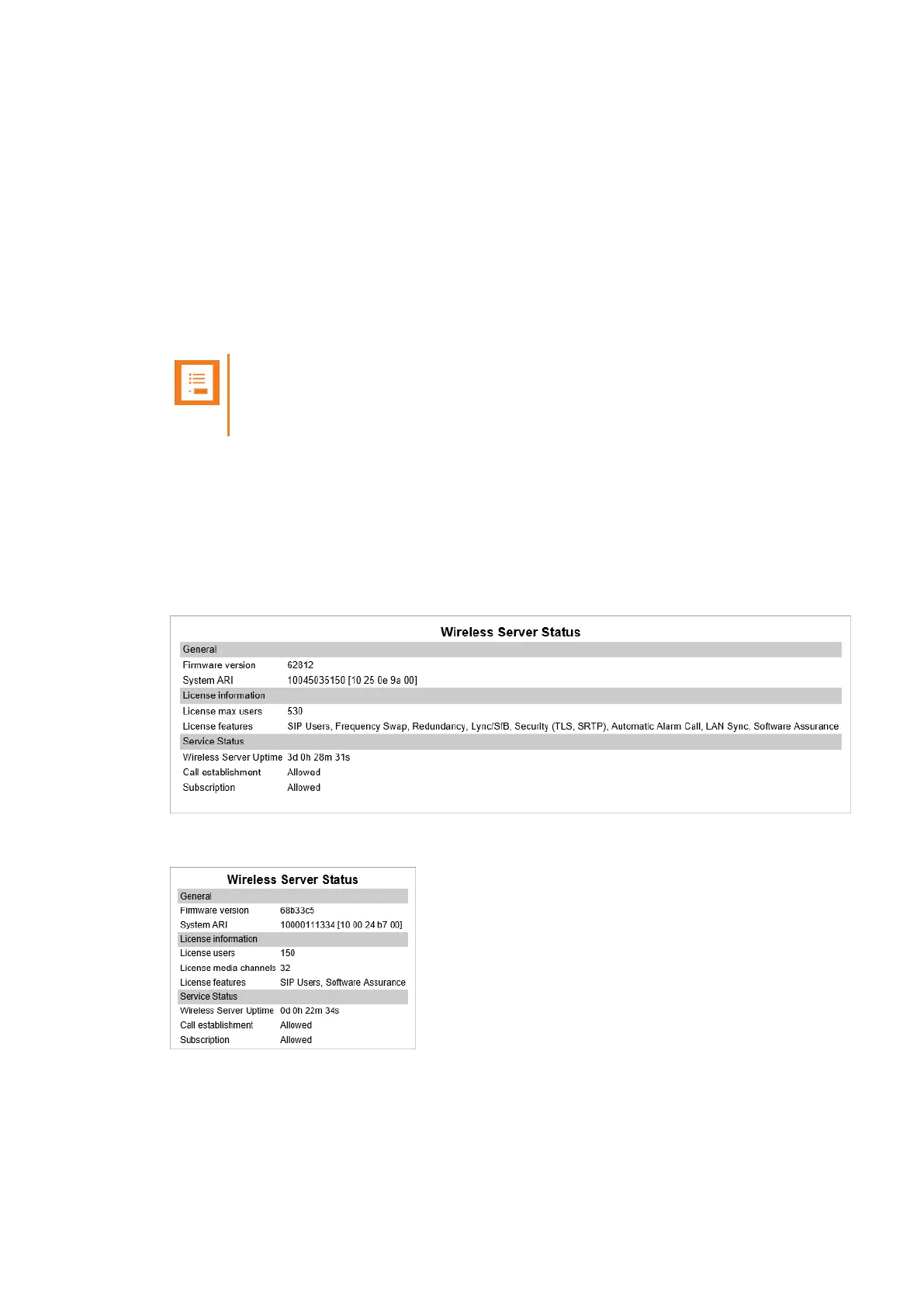 1. Click Status, and then click Wireless Server. The Wireless Server Status page appears.