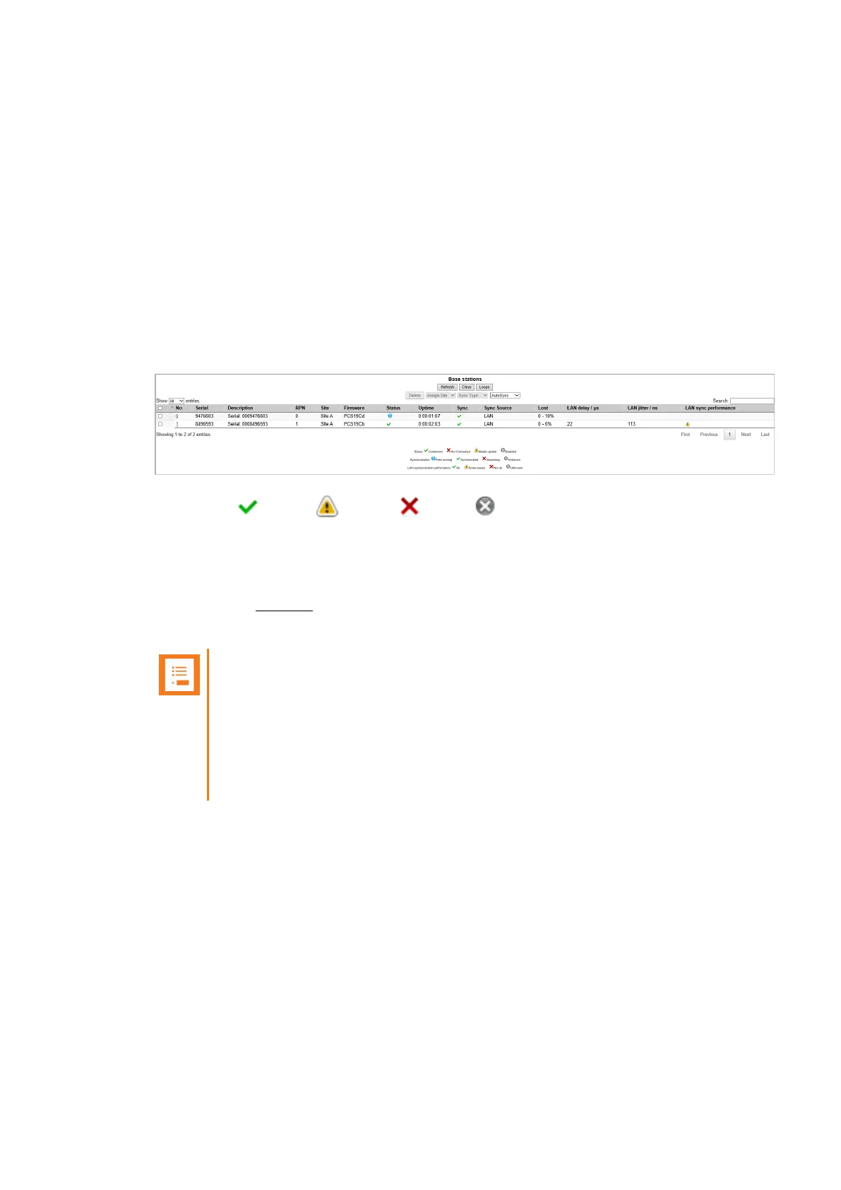l Sync column does not show Free running icon (the base station is not the Sync Master)