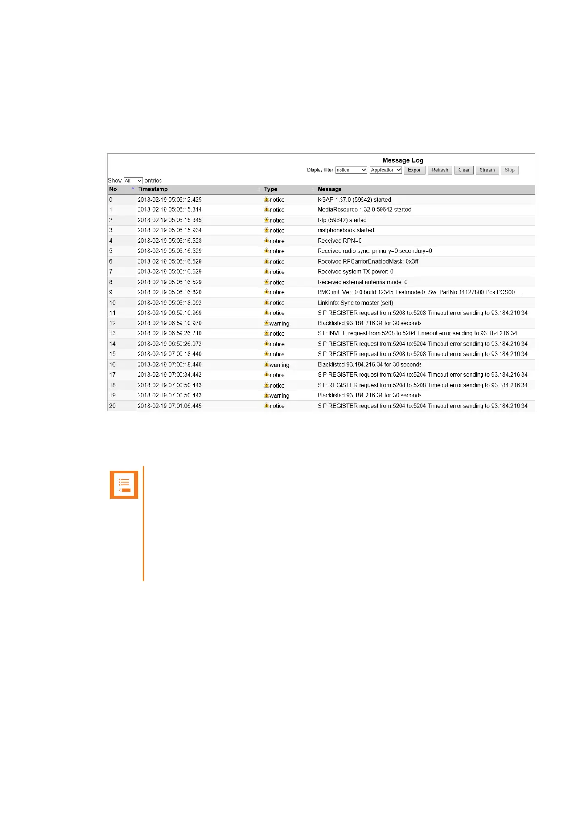 2. From the Display filter list you can select between emergency, critical, error, warning,