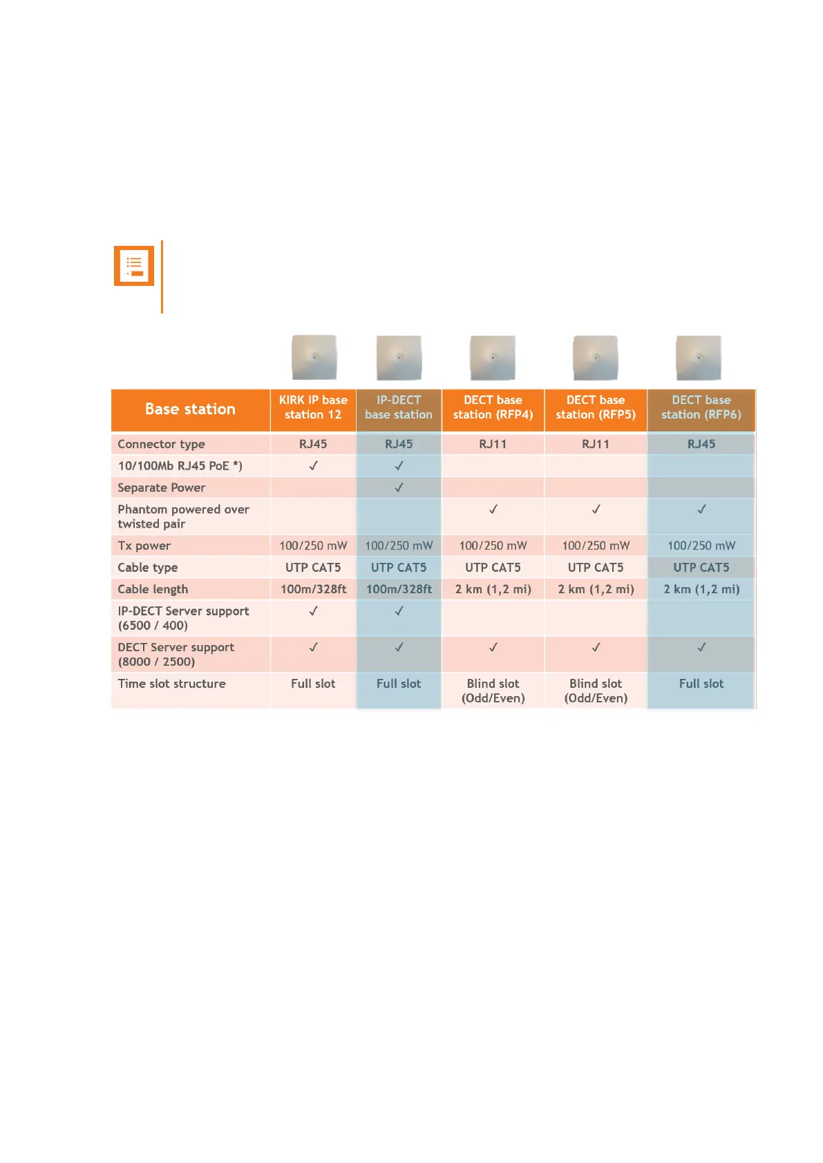 rix you see the currently most used Spectralink base stations and the difference between them.