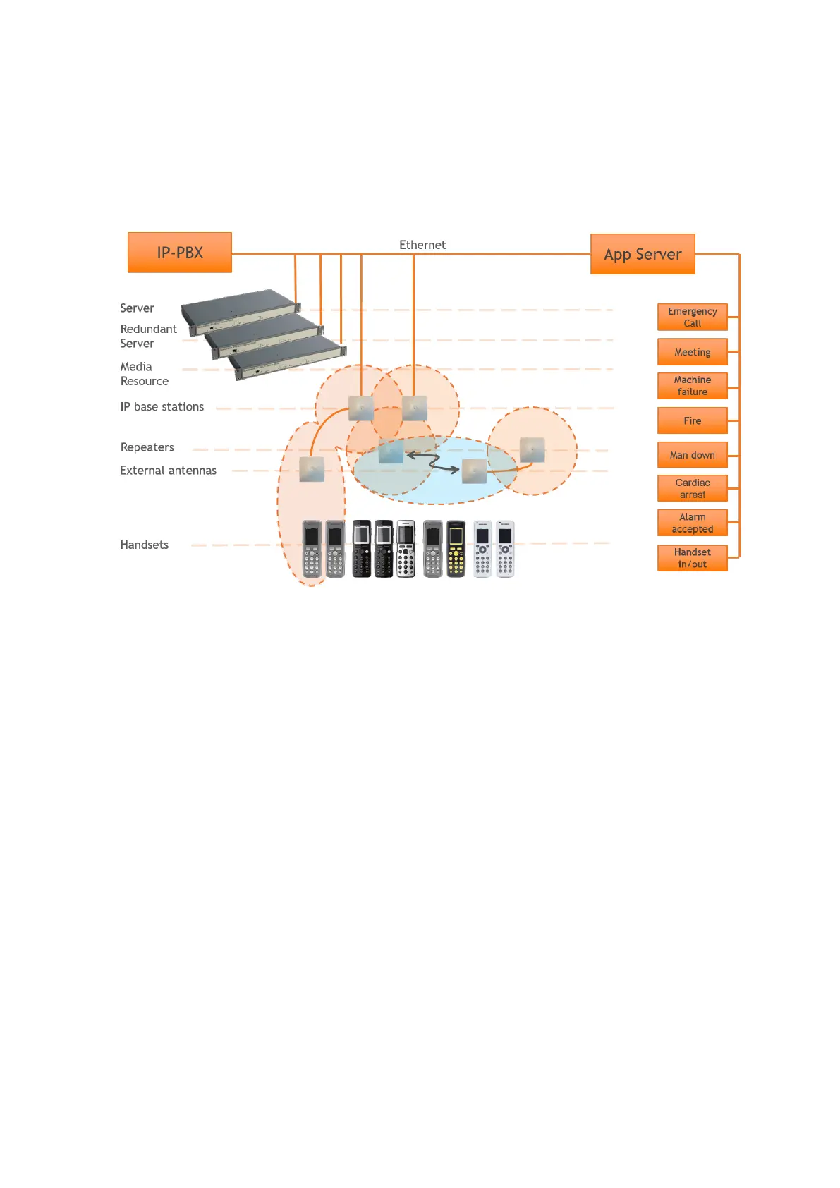 Optional wireless Spectralink DECT Repeaters can be used to extend the coverage of the Spec-
