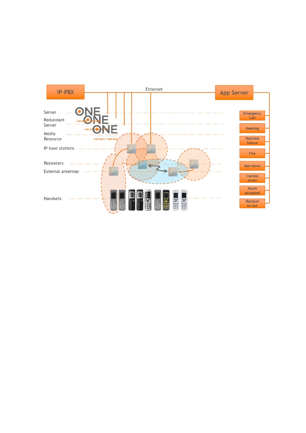 Optional wireless Spectralink DECT Repeaters can be used to extend the coverage of the Spec-