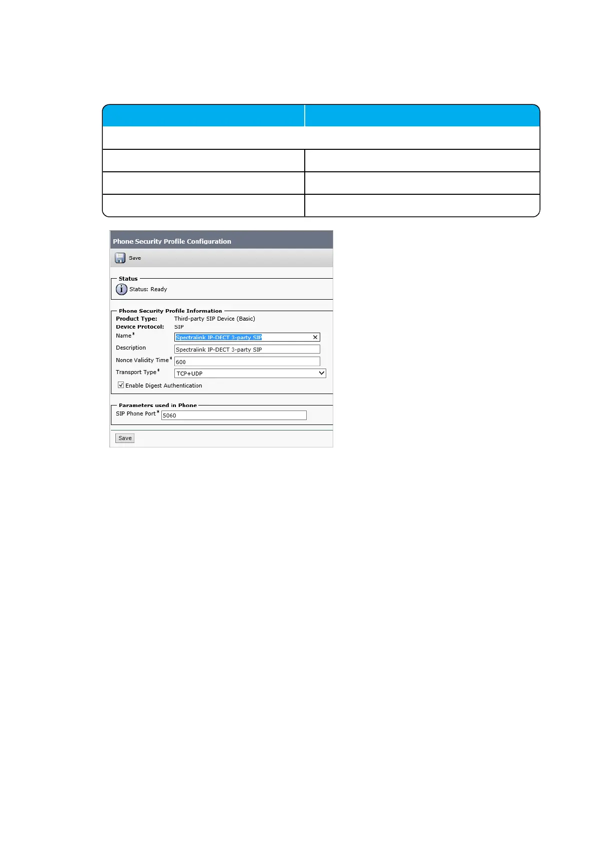 4. On the Phone Security Profile Configuration page, enter relevant data in the following