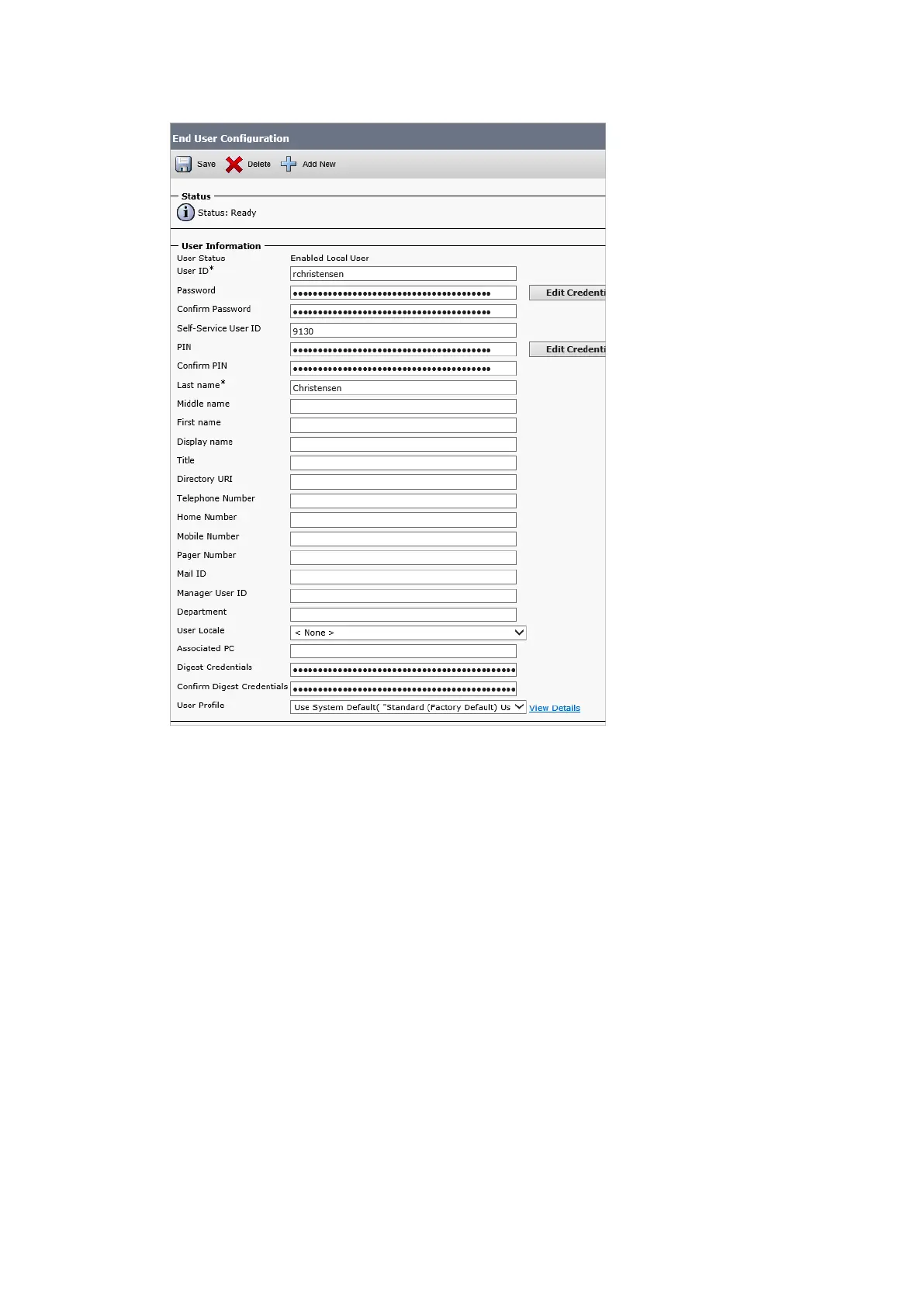 5. Click Add New and repeat the procedure if you want to add another new end user.