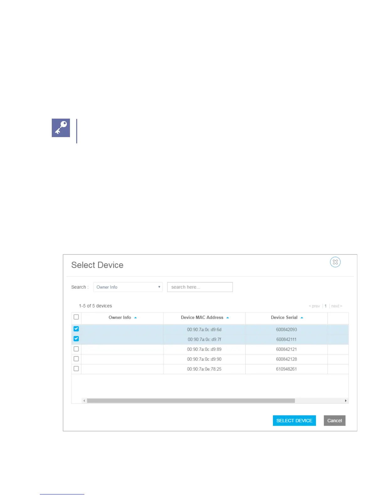 3 Click the Select Devices button and select the devices for this Group.