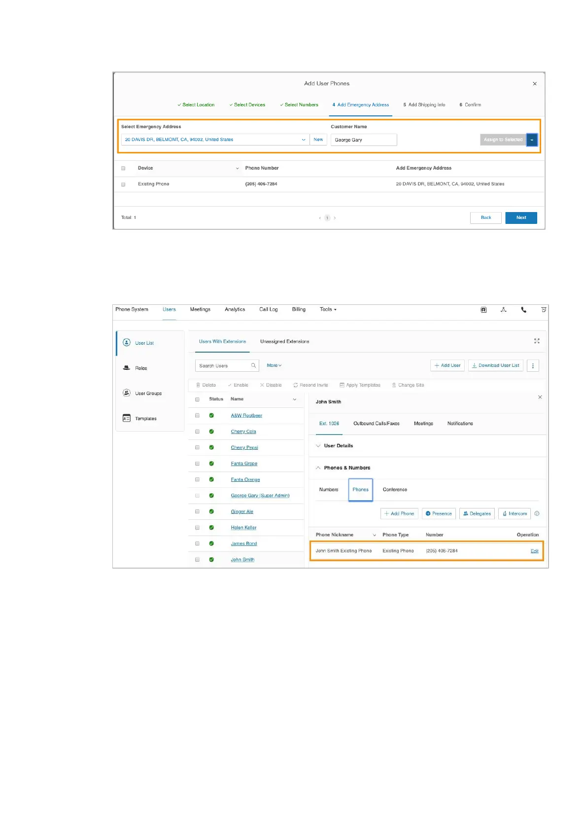 When complete, the new Existing Device is displayed under the selected user