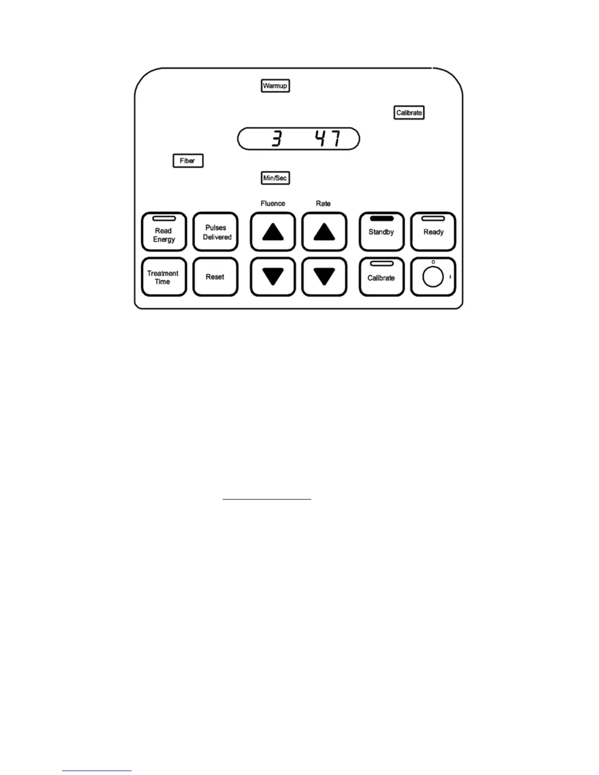 2. Depressing a Fluence or Rate button causes the uence value or pulse repetition rate