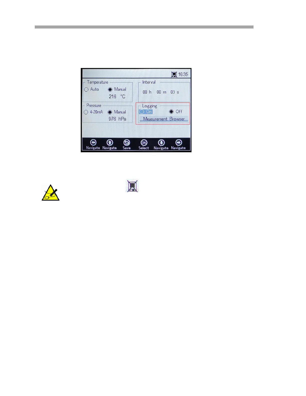In the Status bar, the symbol indicates Logging is turned