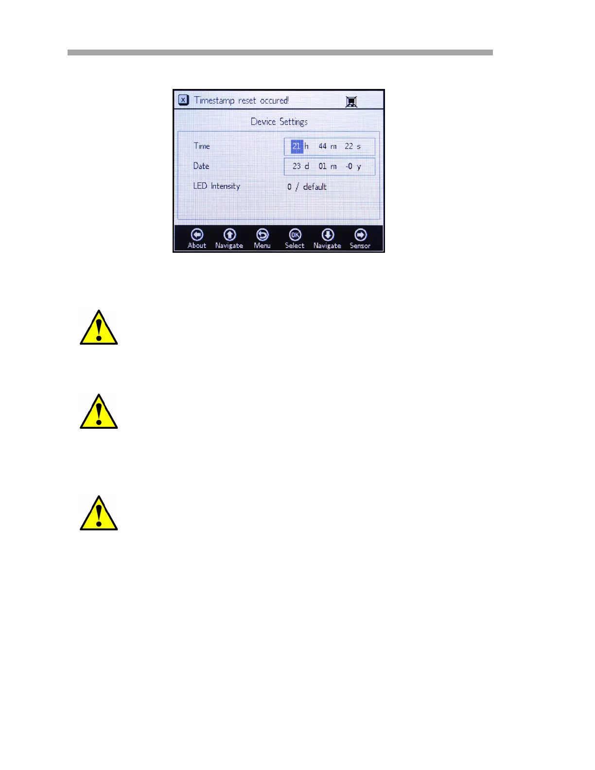 settings will be set to zero. Reset Time and Date before starting a