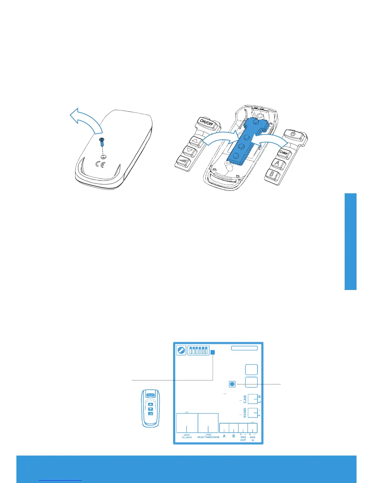 • Retirez la vis cruciforme et ouvrez la télécommande