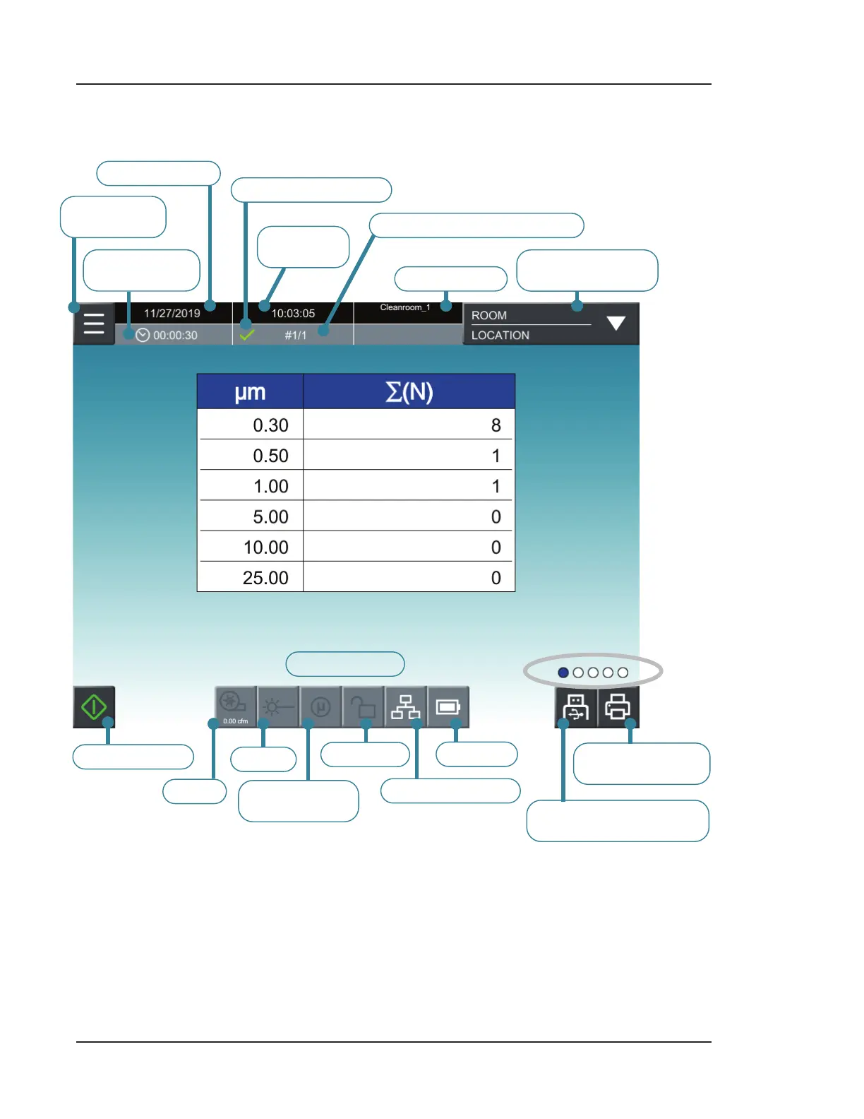 Spectris PARTICLE MEASURING SYSTEMS Lasair Pro 310 - HOME Screen