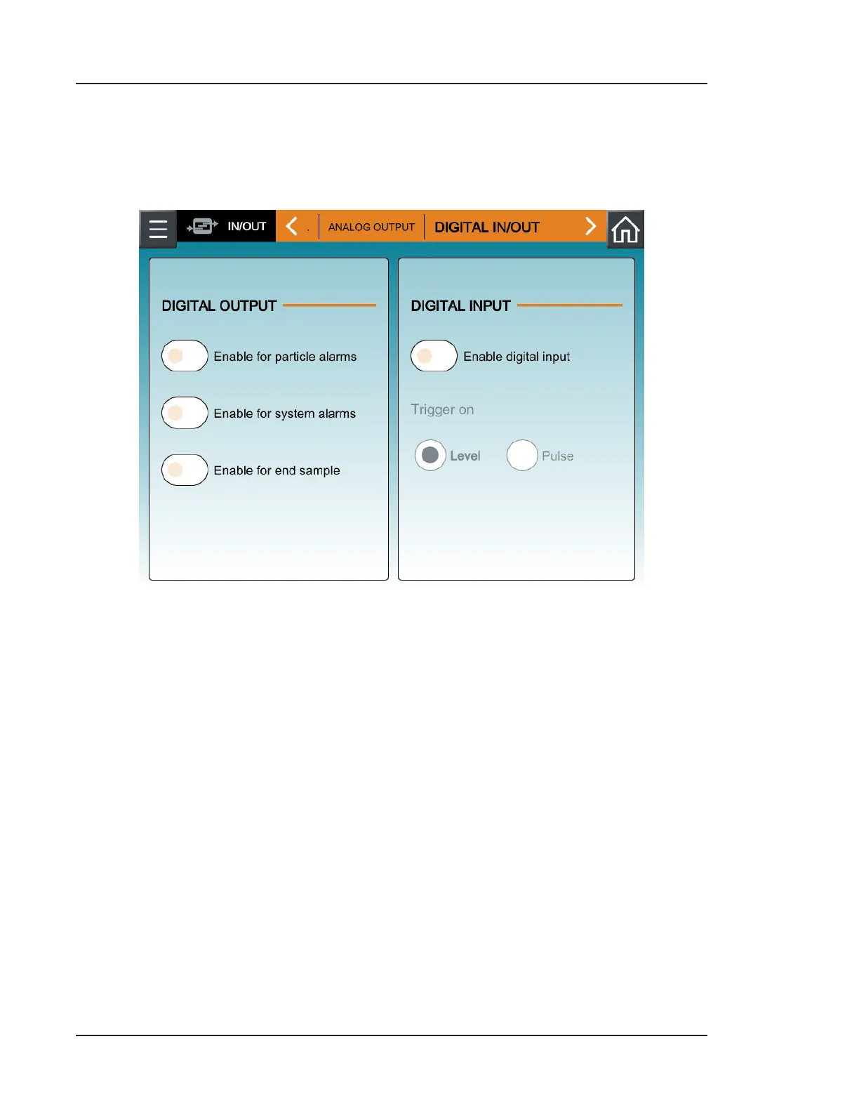 • Enable for particle alarms: Enables digital output signals to be sent for every