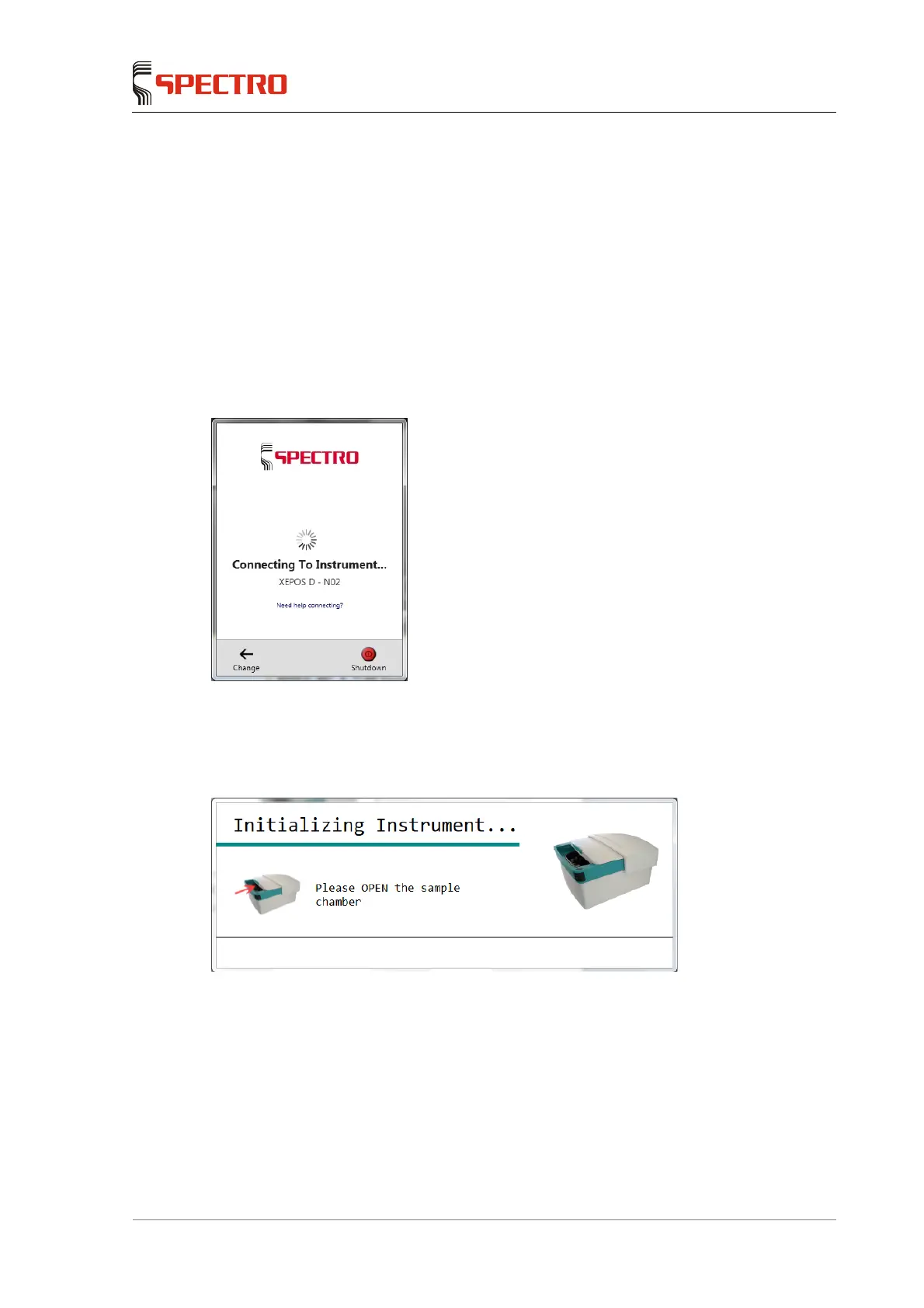(open/closed). If the sample chamber lid is closed, you will be prompted to open it: