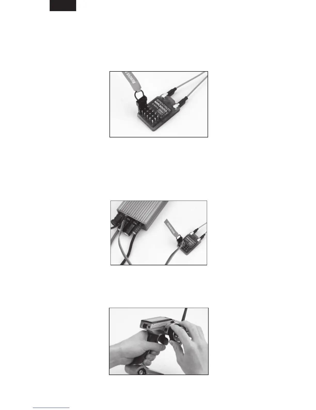 1. To bind an MR3000 to a compatible transmitter, insert the bind plug in the BD