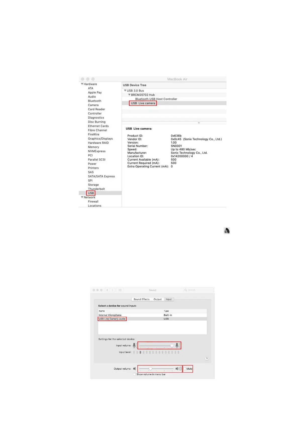 ② Pull down "Hardware -USB-USB Device Tree", and if "USB Live Camera"