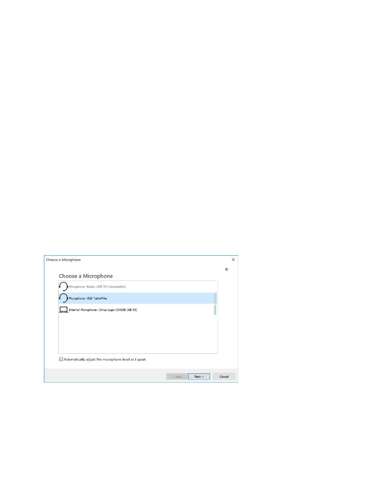 select the one you plan to use (Microphone: USB TableMike) and then click “Finish”. If you like,