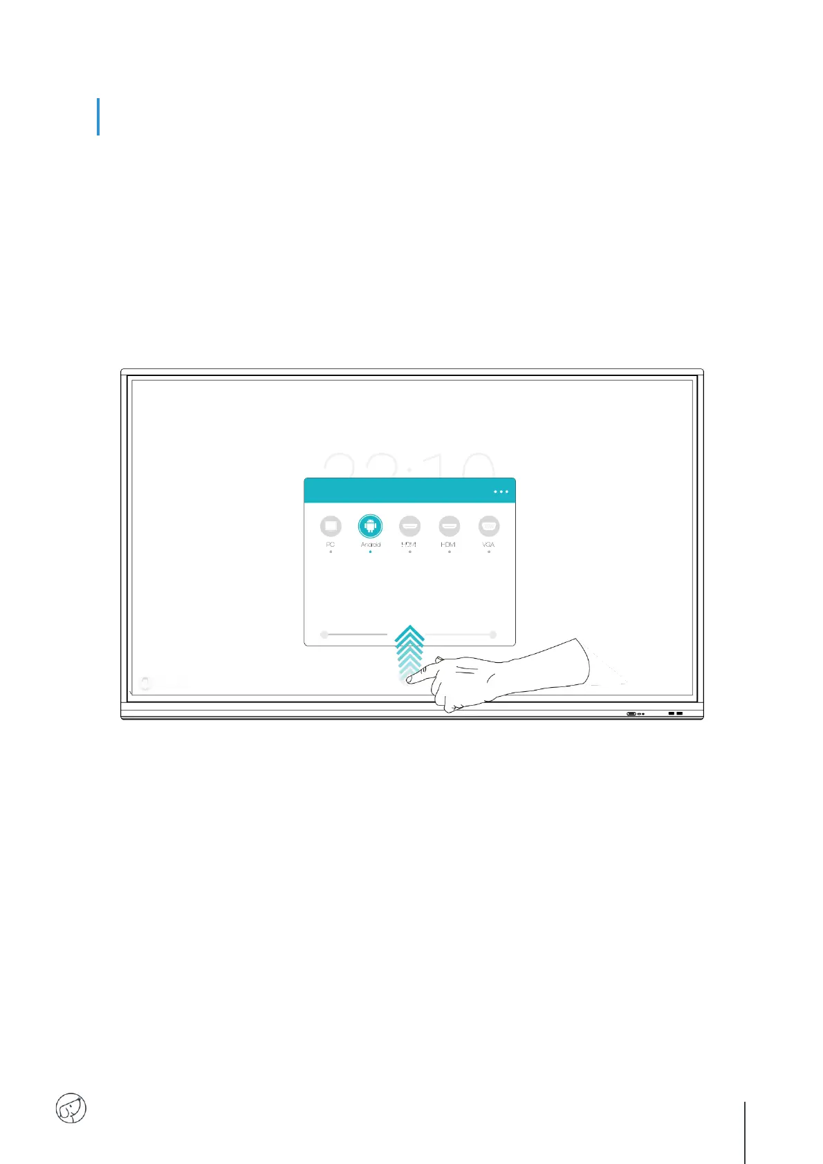 1. Position your finger at the bottom center of the screen, on the black band.