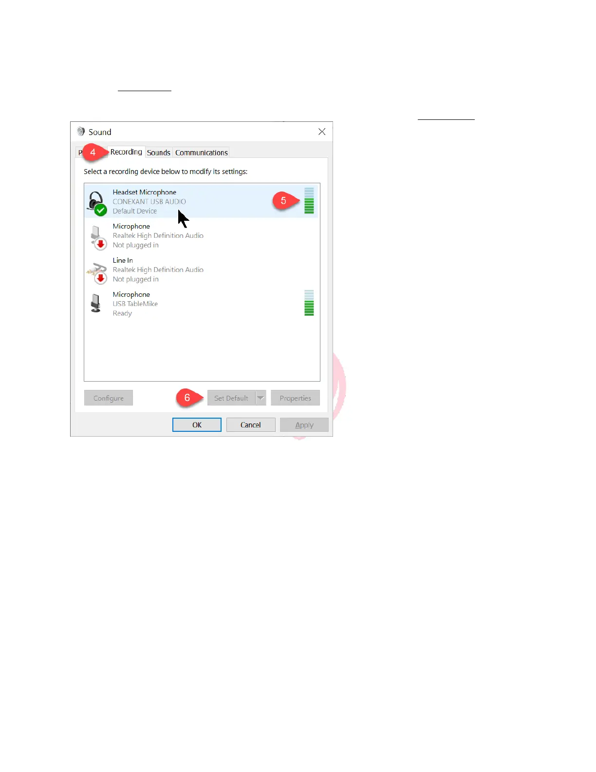 5. As you speak into your microphone you should see green bar movement