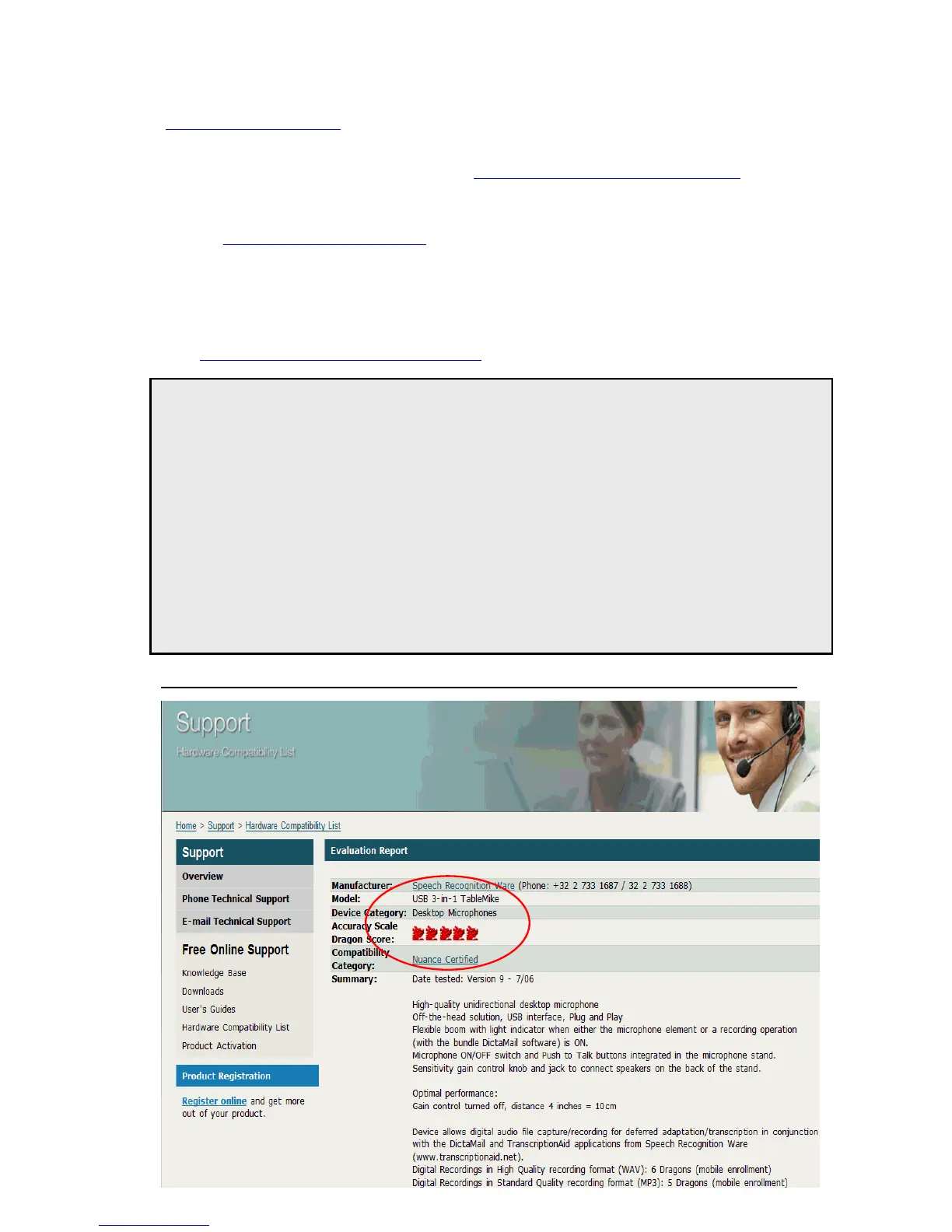 Best in class '5 Dragons' certification of the TableMike (former model) for Dragon NaturallySpeaking® by Nuance Inc.: