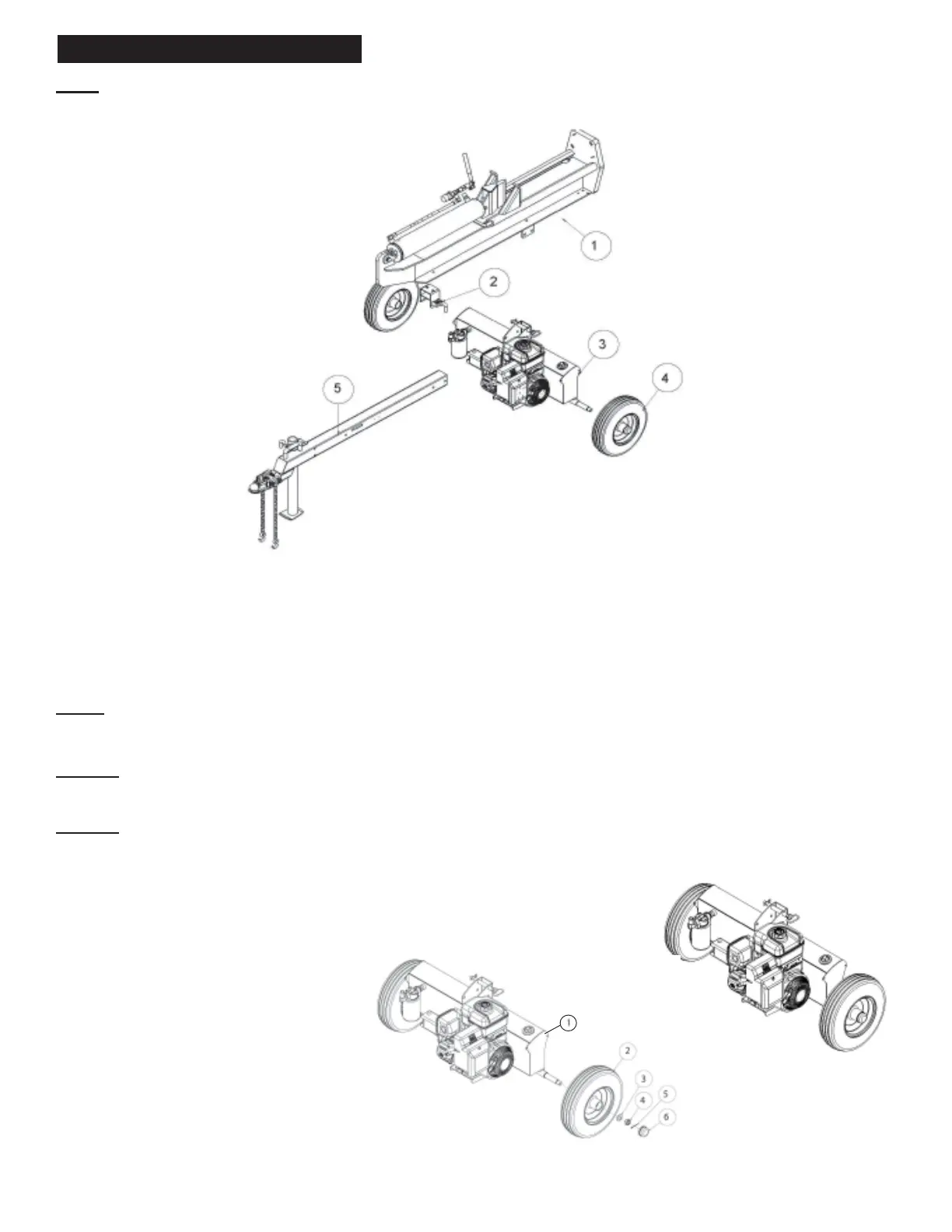 NOTE: This log splitter was partially assembled at the factory. Refer to the drawings and parts list should it become