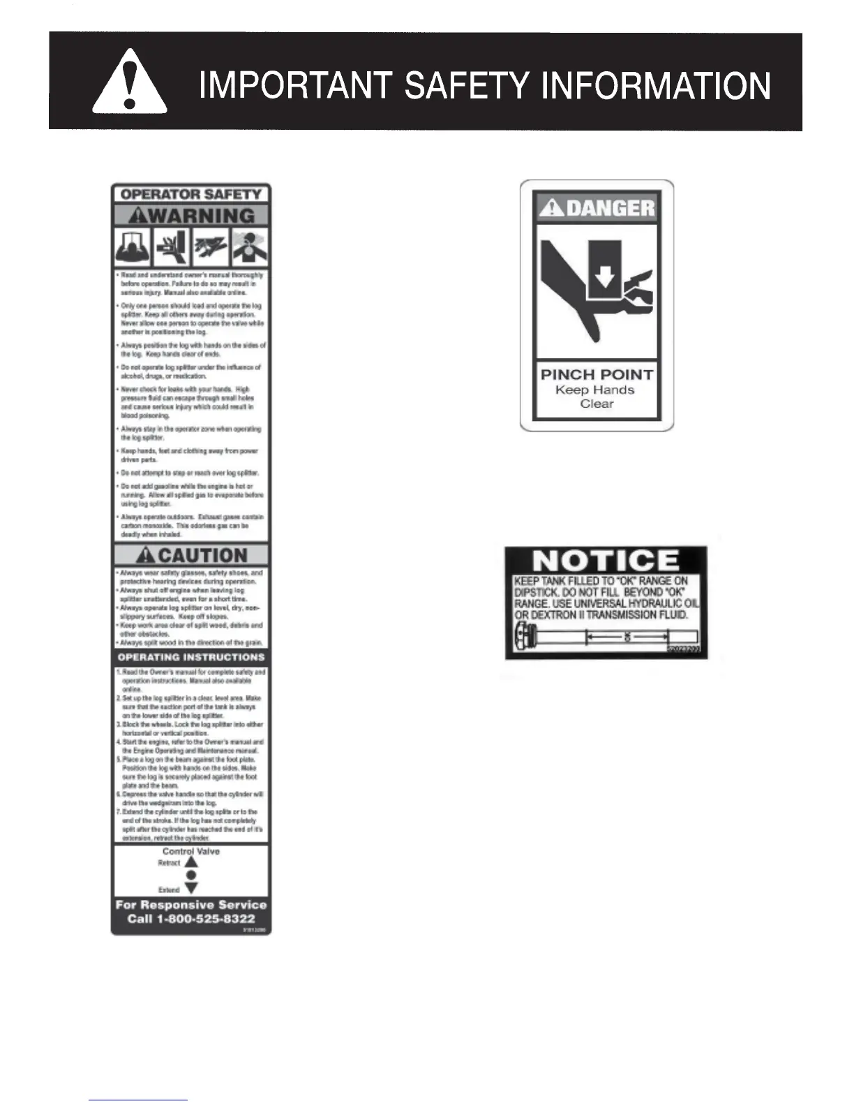SpeeCo Splitmaster 401628BB - Operator Safety and Warnings