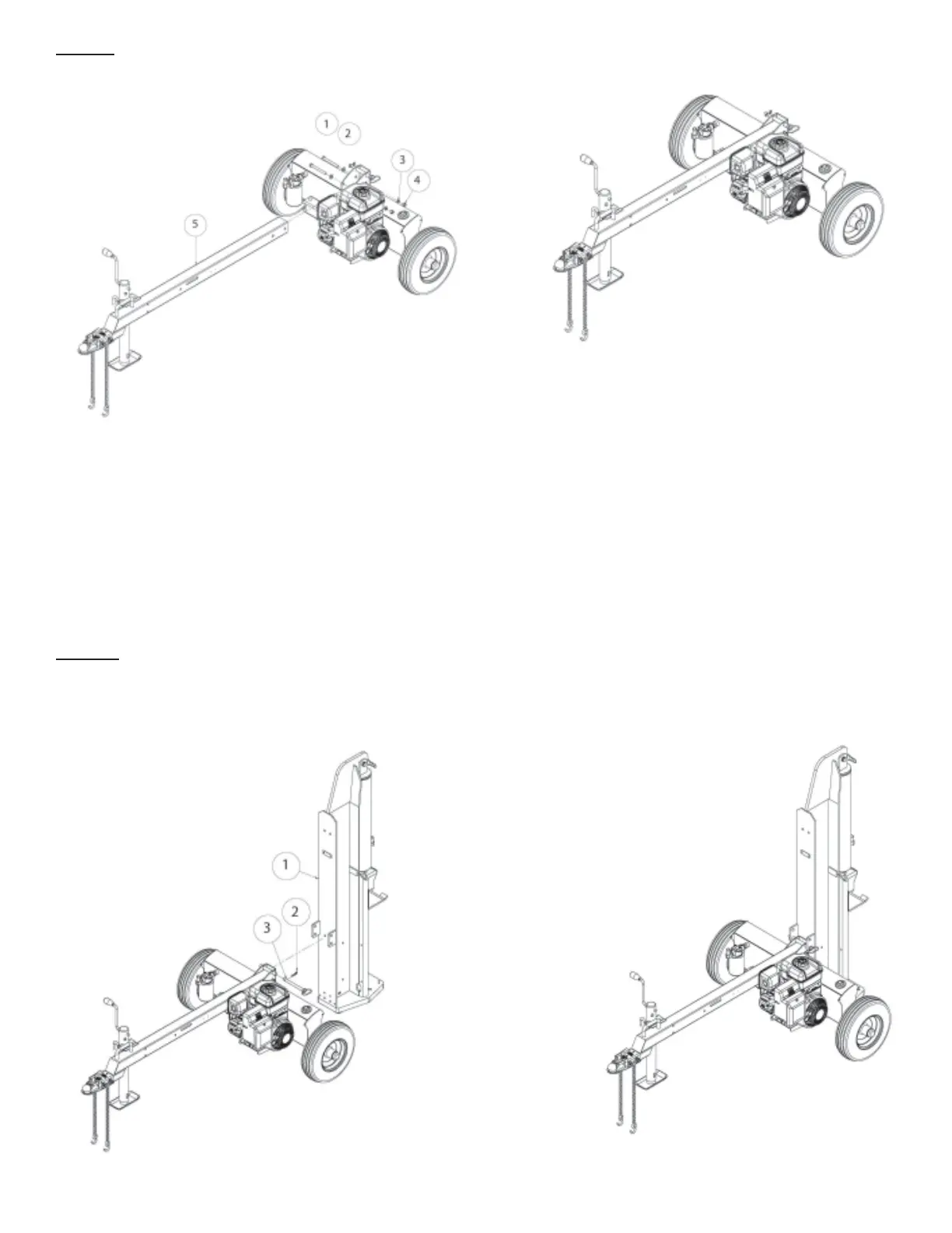 STEP 3: Attach the tongue assembly (5) to the tank assembly (1) using two 1/2” NC x 4-1/2” hex cap bolts (2), two 1/2” l