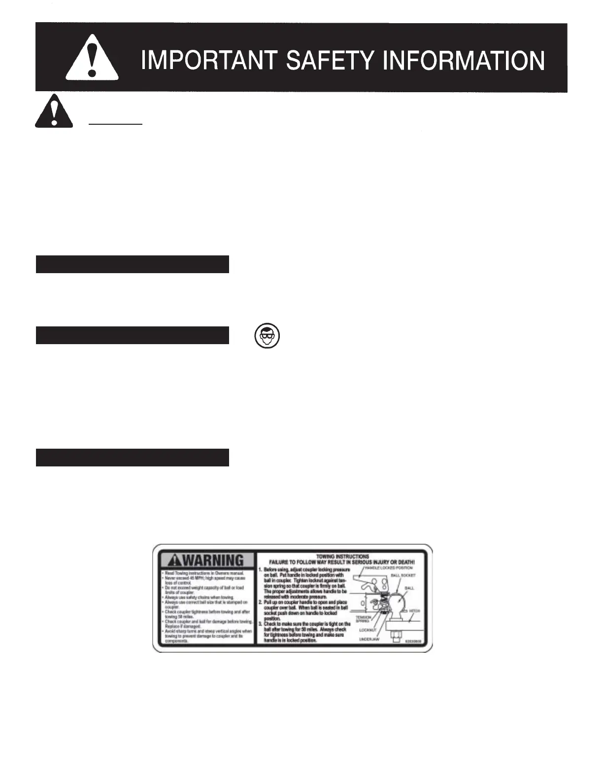 BEFORE operating this log splitter make sure that you wear safety gear such as goggles or safey glasses, steel toed