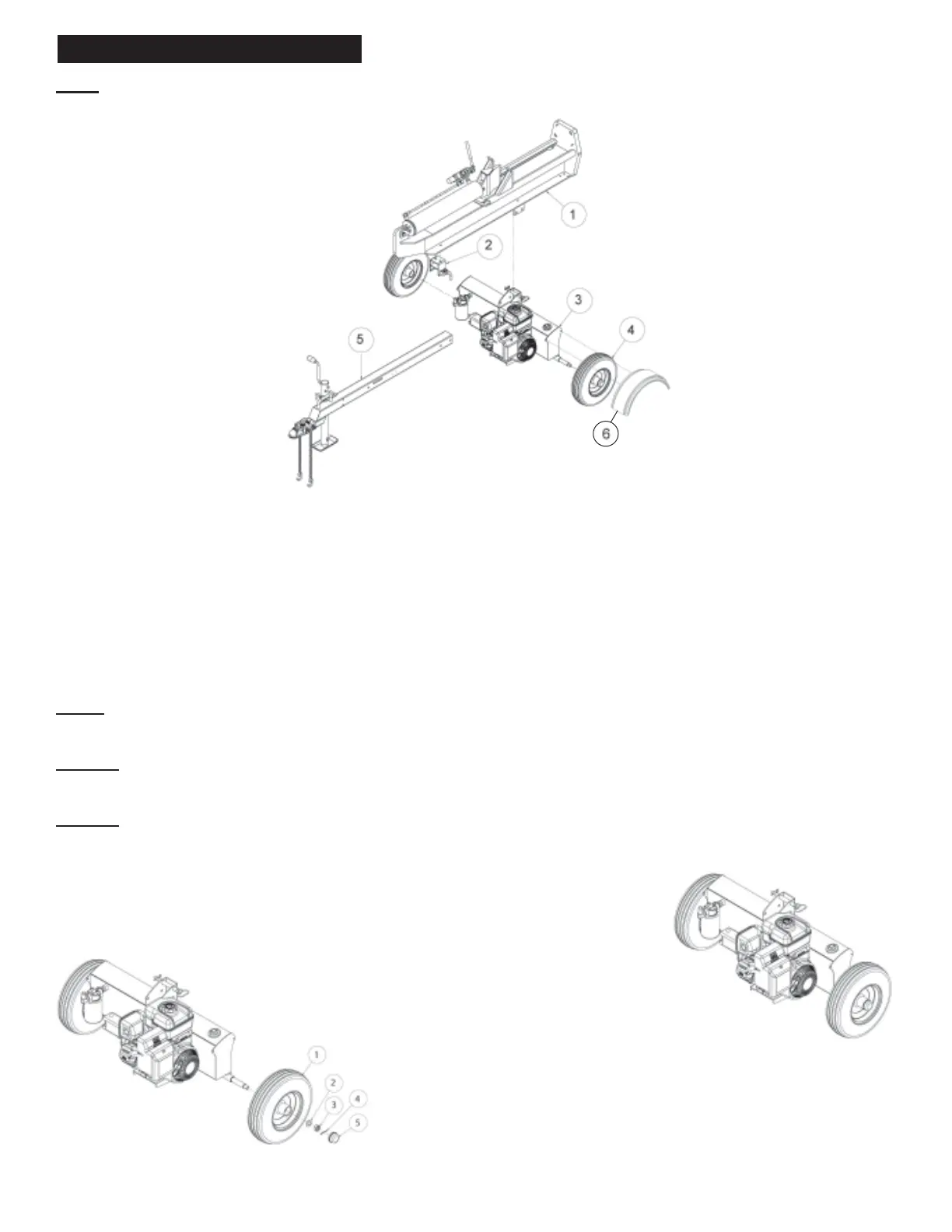 NOTE: This log splitter was partially assembled at the factory. Refer to the drawings and parts list should it become