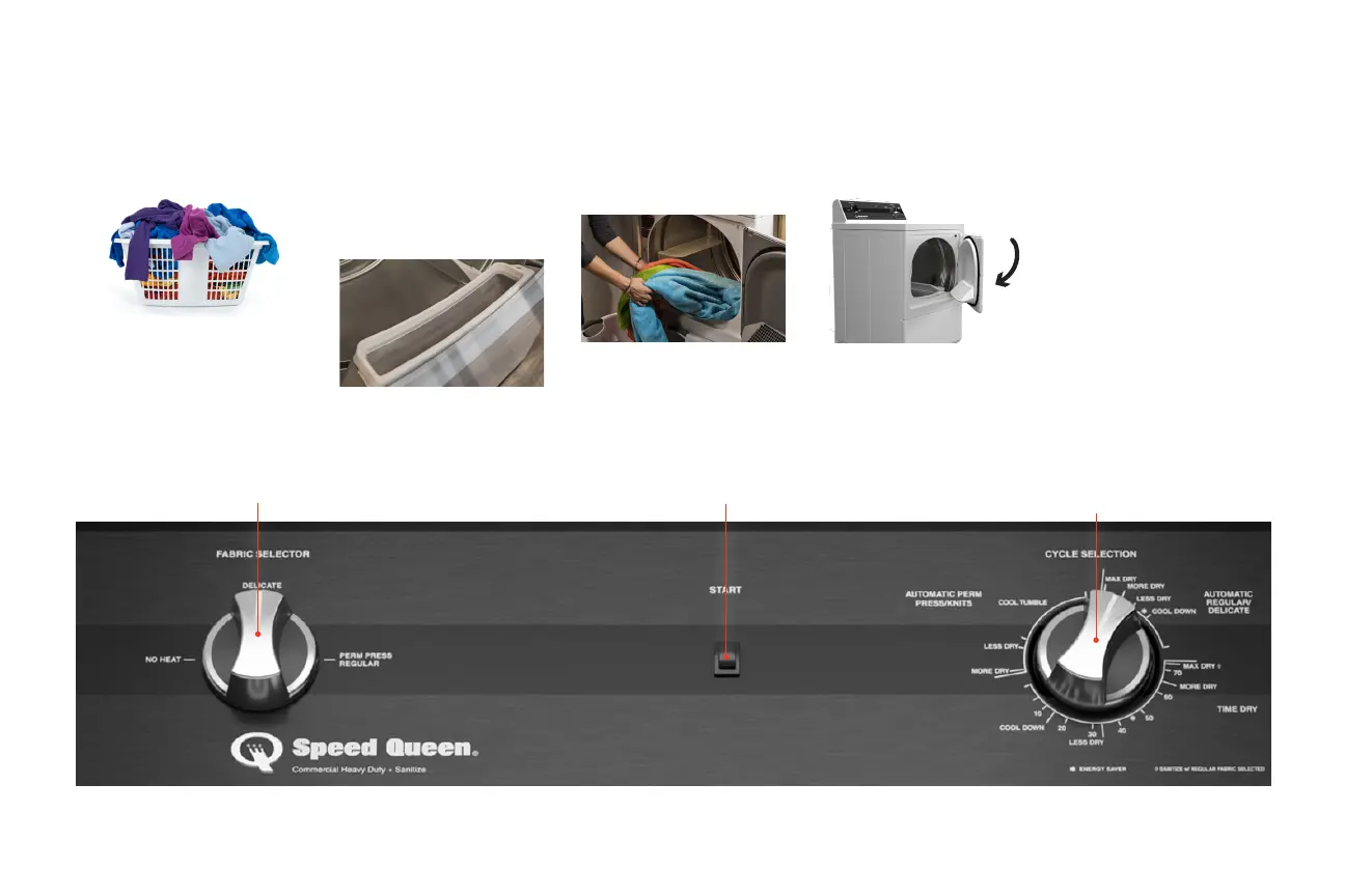 Speed Queen DR3 - Operating Your Dryer; Preparation and Loading; Cycle and Selector Settings; Starting and Completion