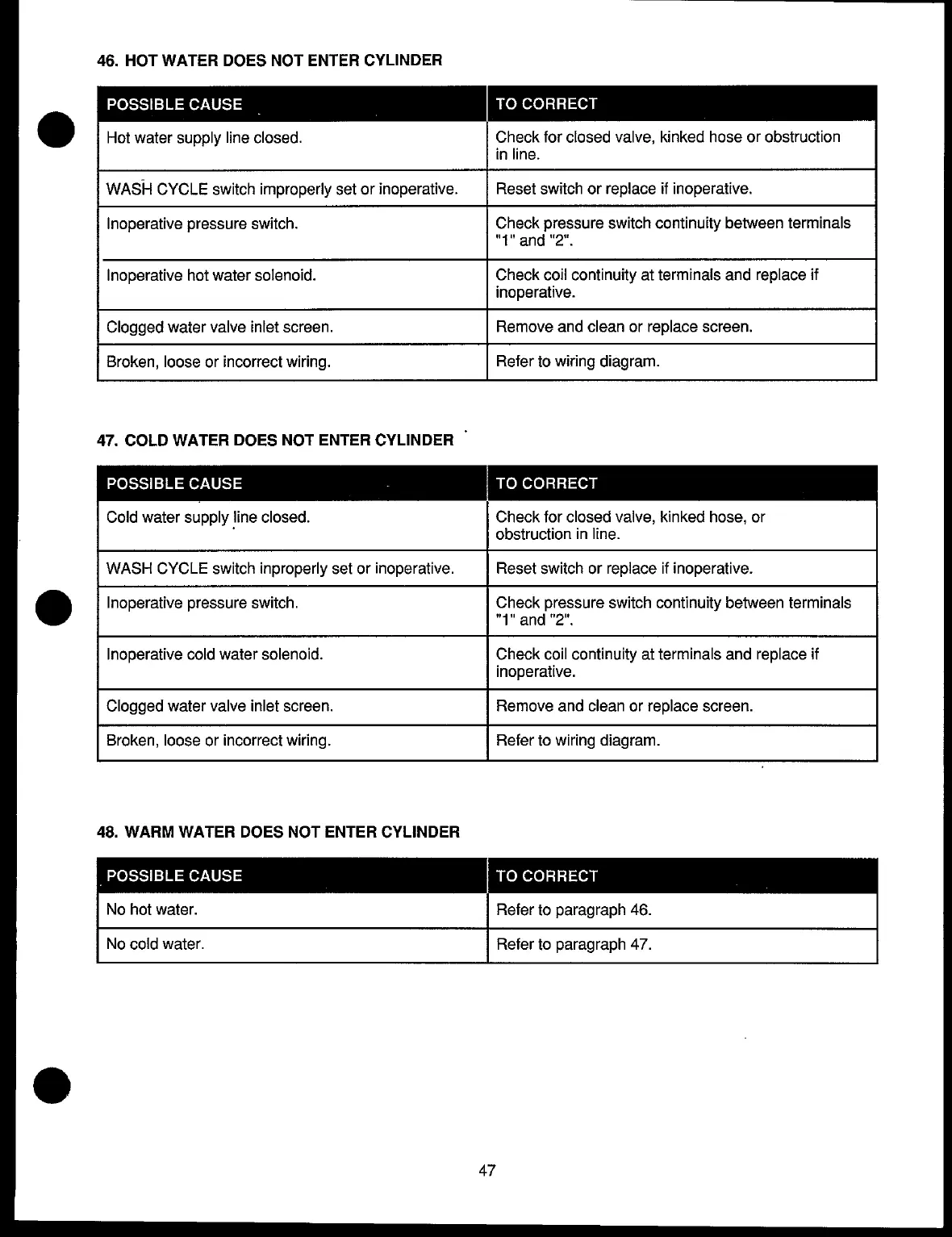 Speed Queen EX218 - Cylinder Does Not Fill