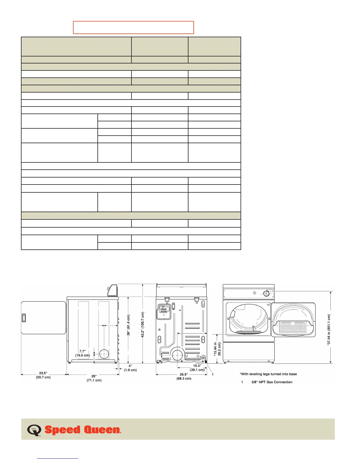 ** Gas dryers can be field converted for operation on LP gas with optional 458P3 conversion kit.