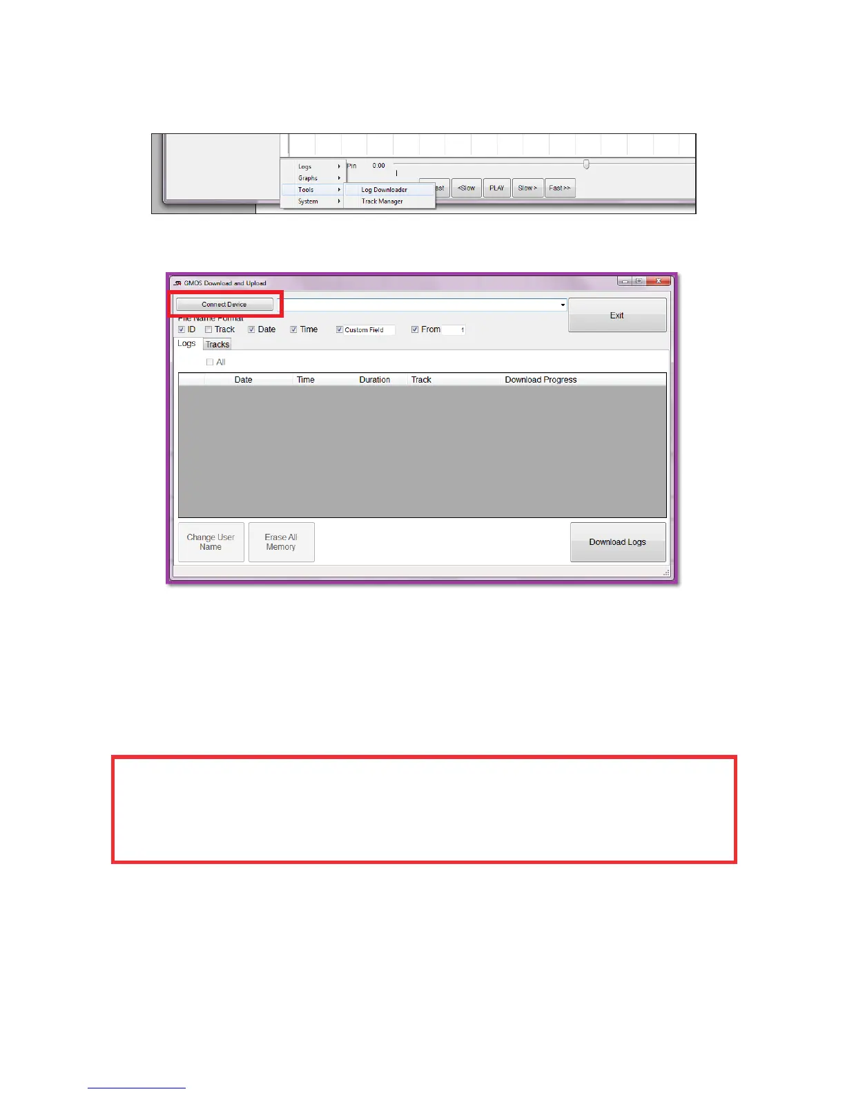 6. Click on “Connect” to connect the device. Now you are ready to download logs.