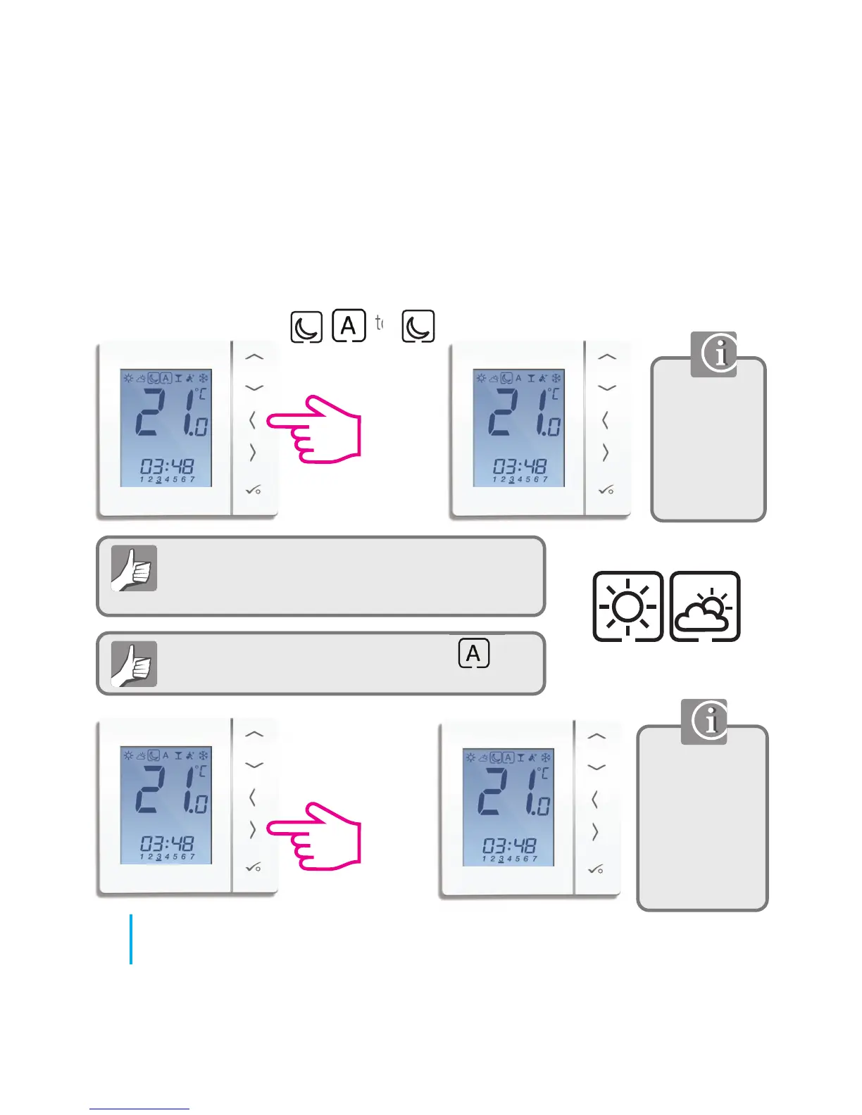 PRT and Group Control Thermostat. Setting permanent low temperature.