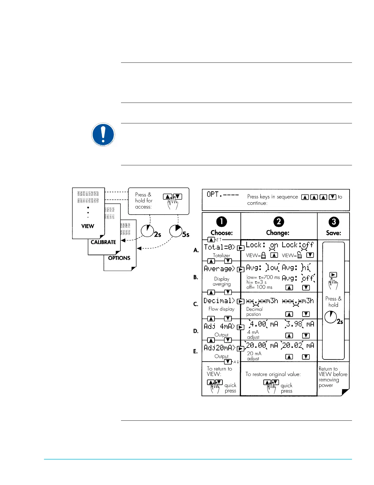 Diagram Figure 7–6 displays the flow meter functions and Options menu.