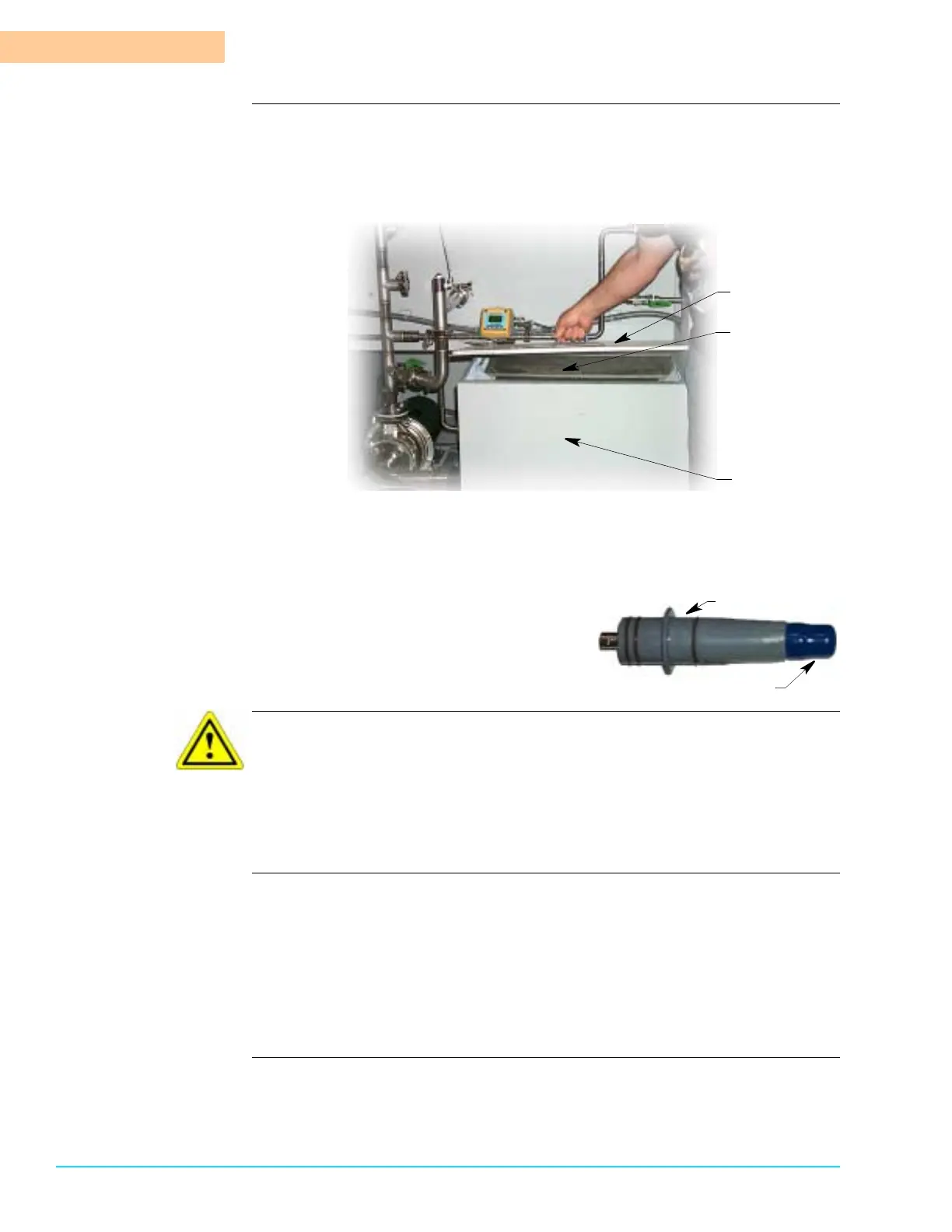level reaches the pH monitor blue buffer solution cap, remove the cap and