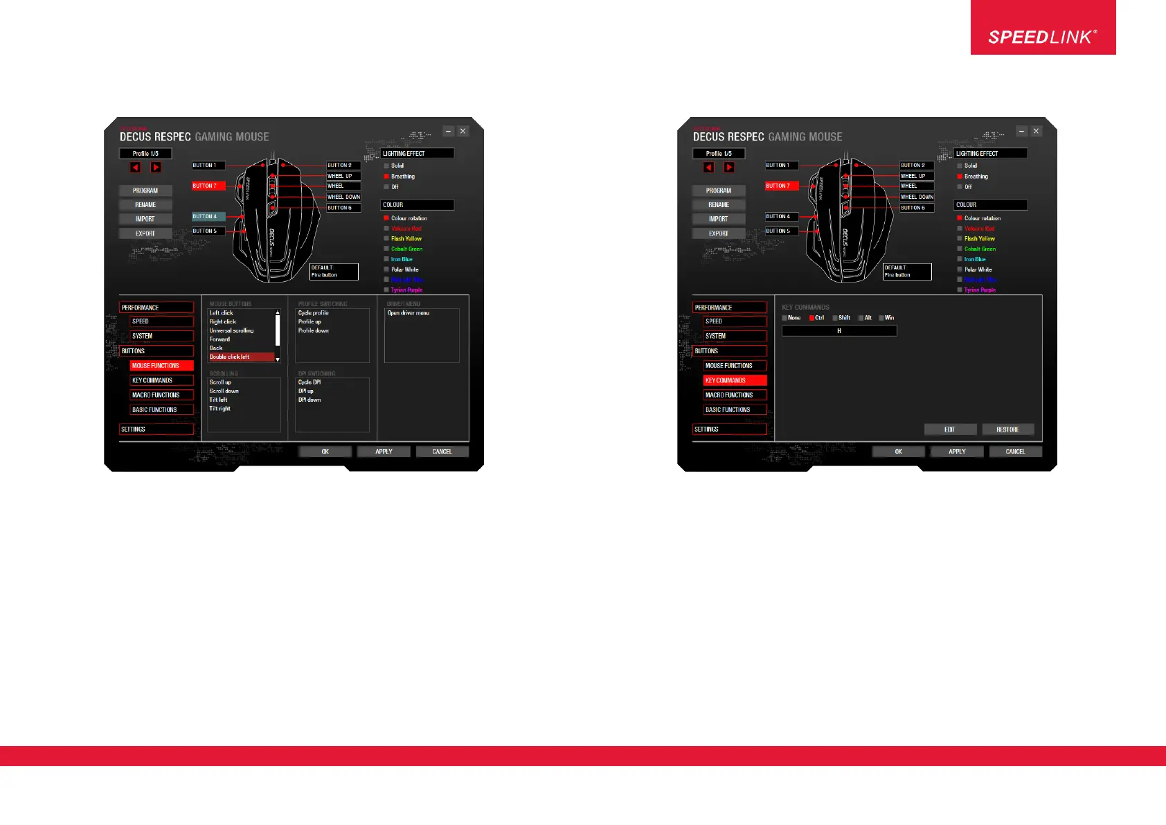 Here you can assign special mouse functions to the selected mouse button, e.g. left click, right click, scroll