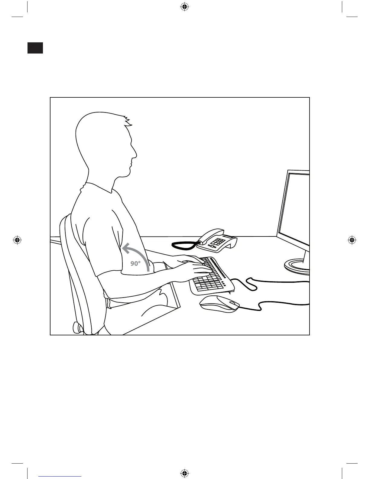 Armlänge beträgt. Stellen Sie die Tastatur auf gleicher Höhe mit der Maus