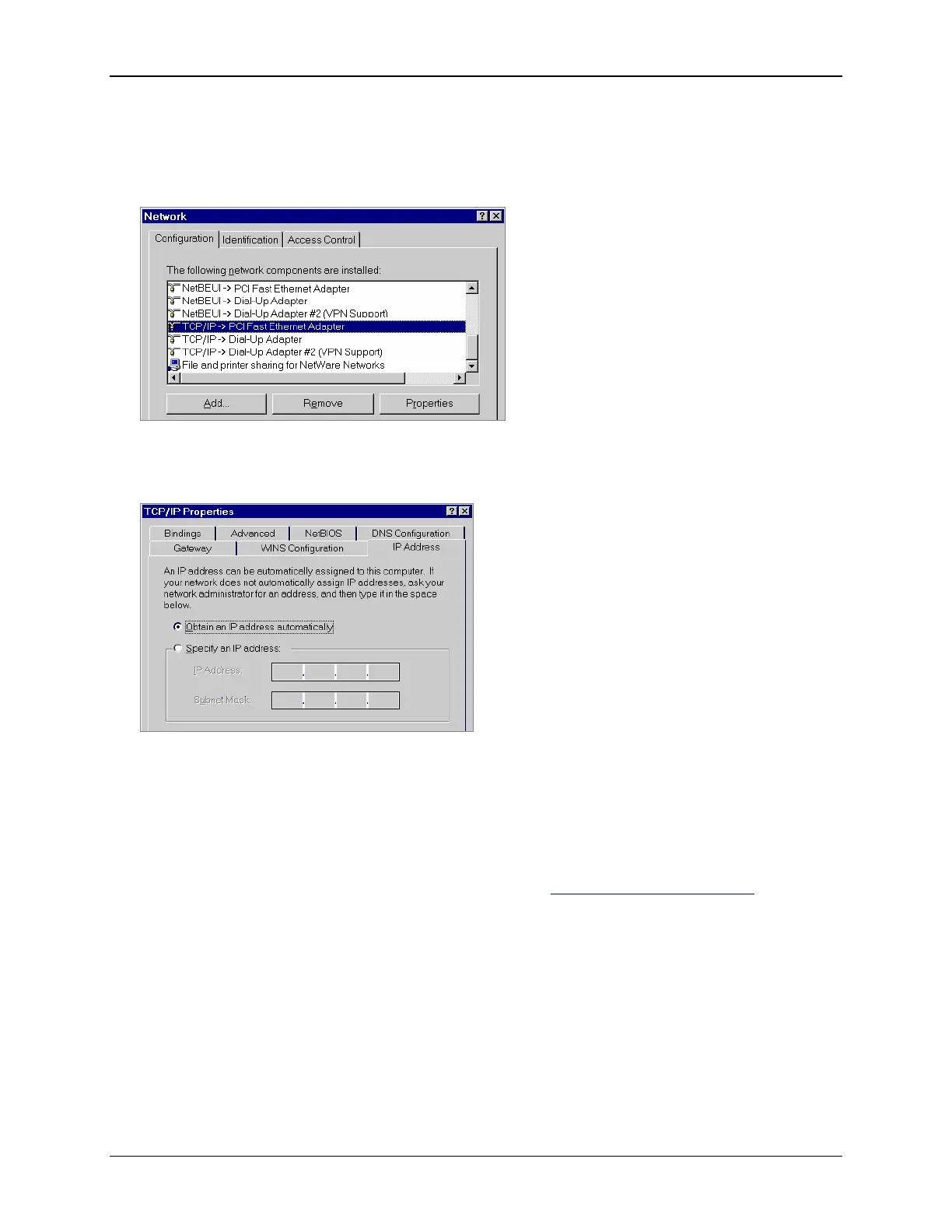 3. Click Properties. This displays the “TCP/IP Properties” window.