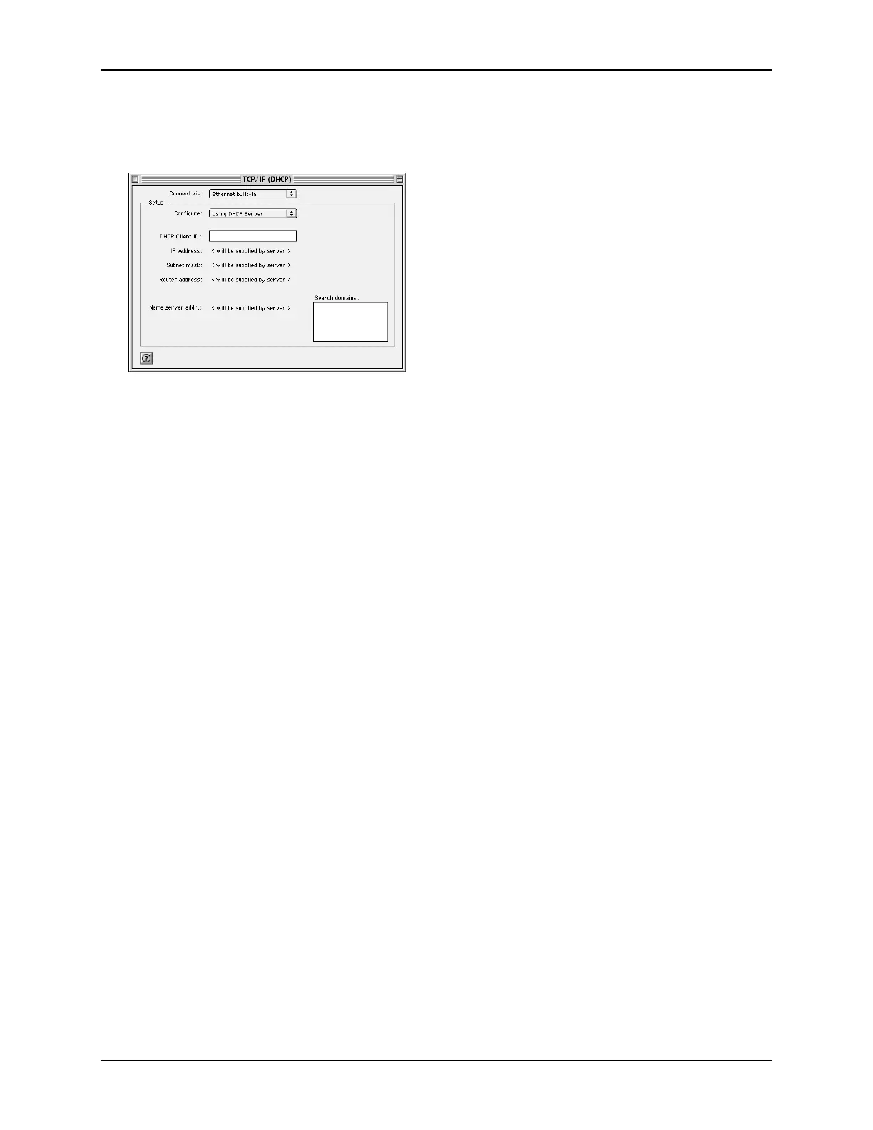 1. Select Apple >Control Panel >TCP/IP. This displays the “TCP/IP” window.