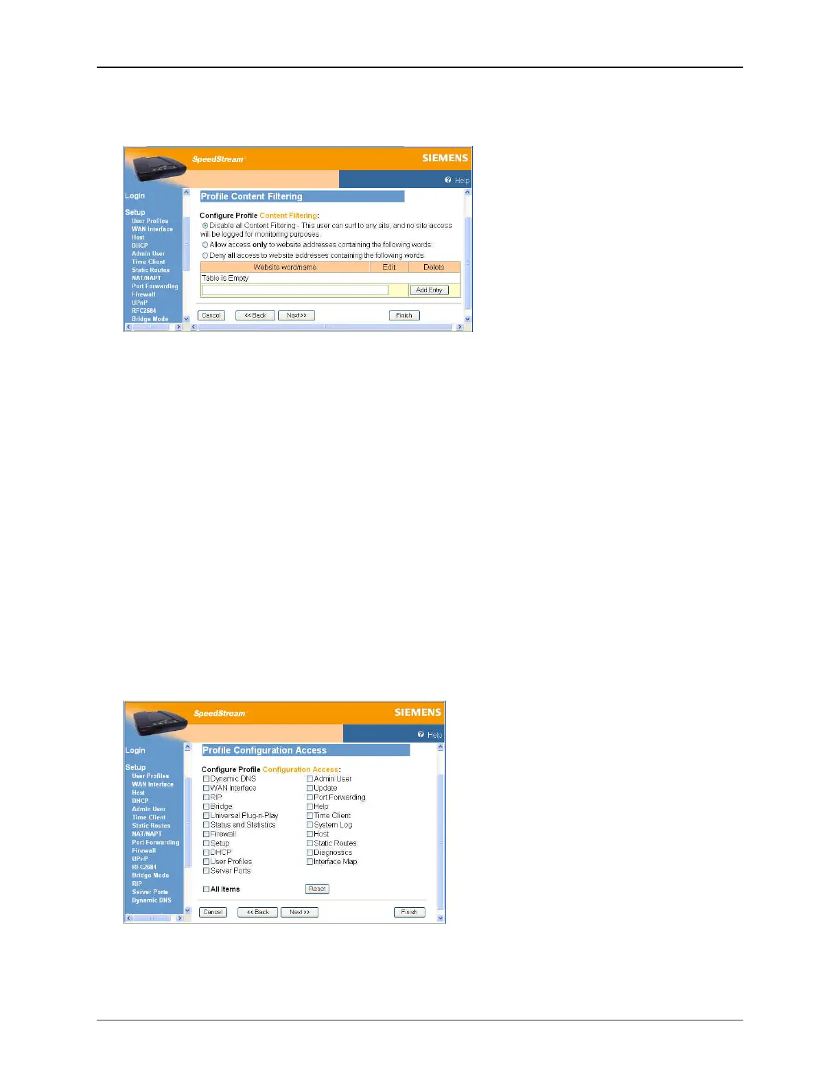 6. Click Next. This displays the “Profile Content Filtering” window. Content filtering restricts access to