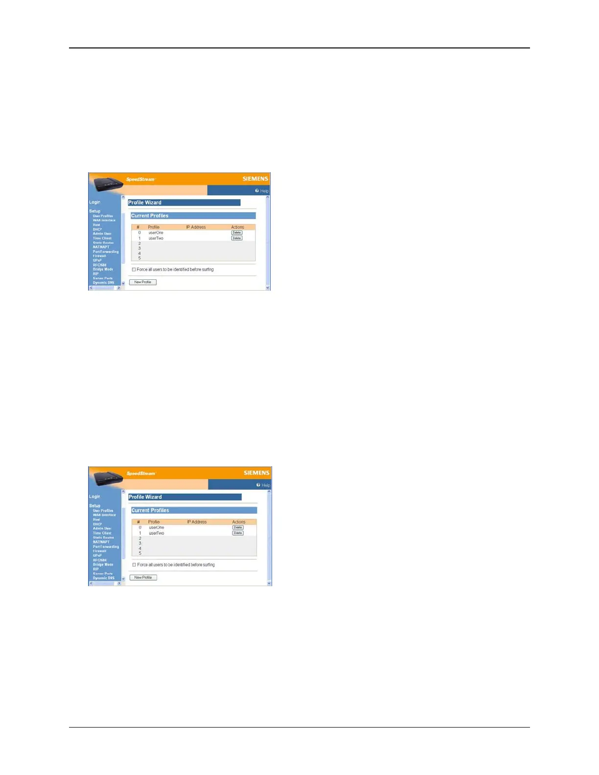 1. Select Setup>User Profiles from the left navigation pane of the Web interface. This displays the