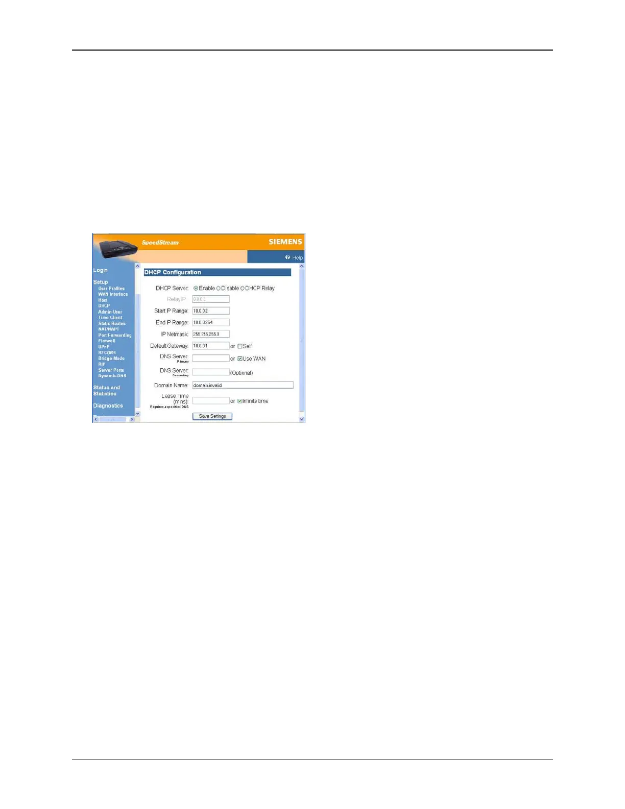 1. Select Setup>DHCP from the left navigation pane of the Web interface. This displays the “DHCP