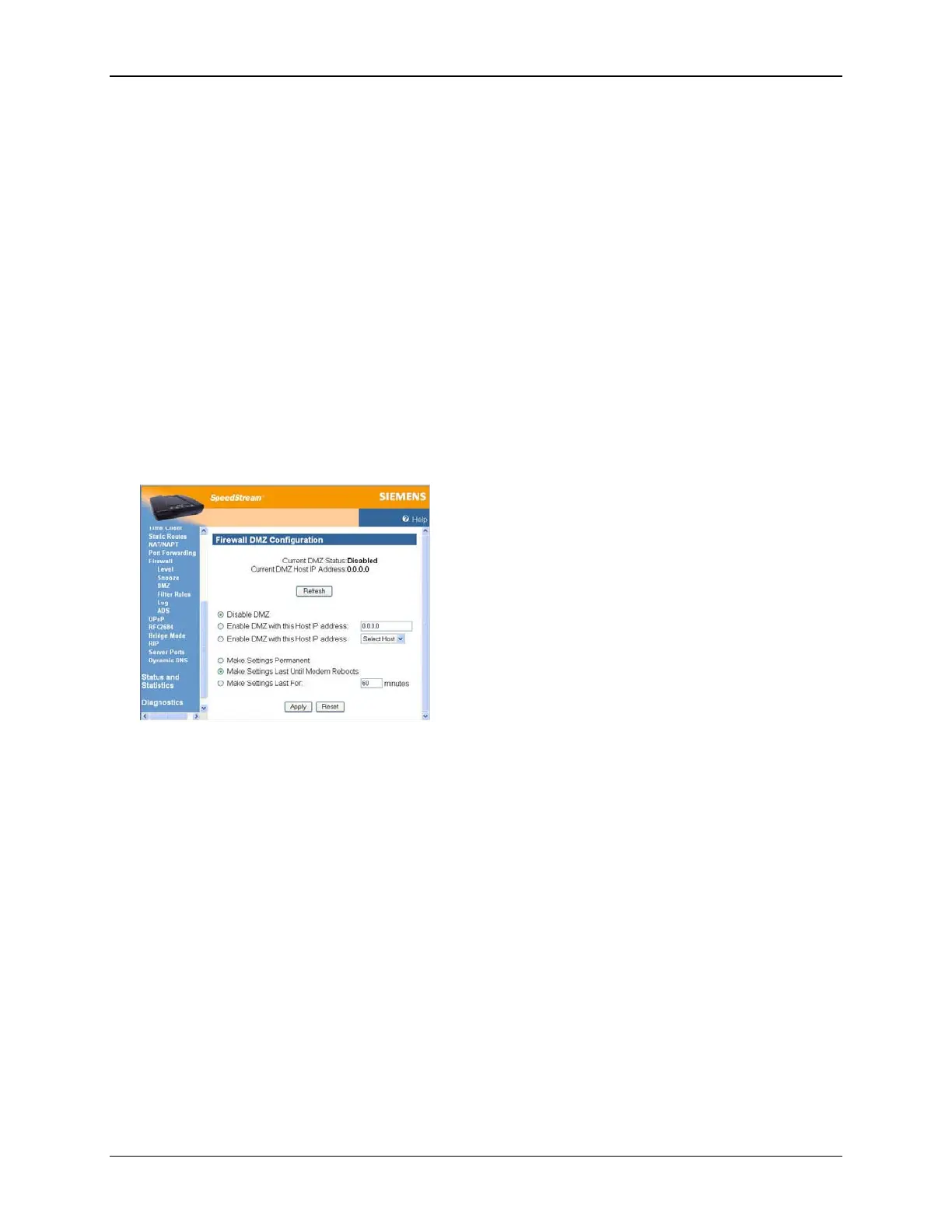 DMZ settings last for only the time (in minutes) entered in the box next to this option.