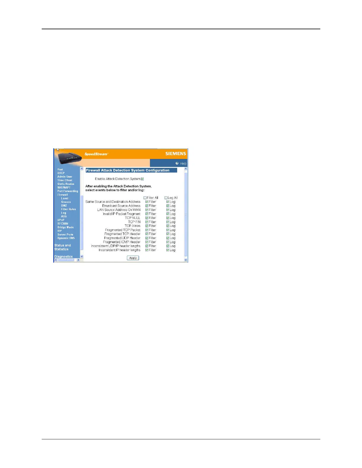 If the Attack Detection System is enabled, the SpeedStream Router provides protection against the most