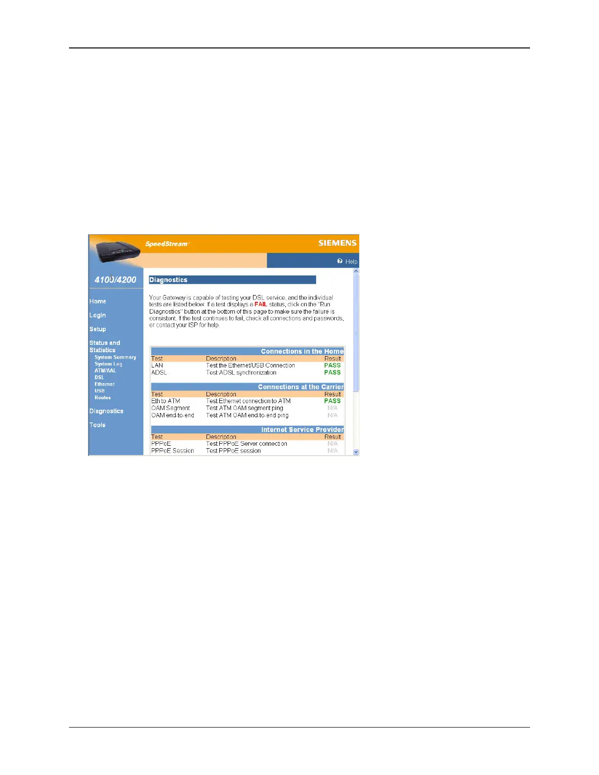 3. Click Run Diagnostics. The test results display under the Results column.
