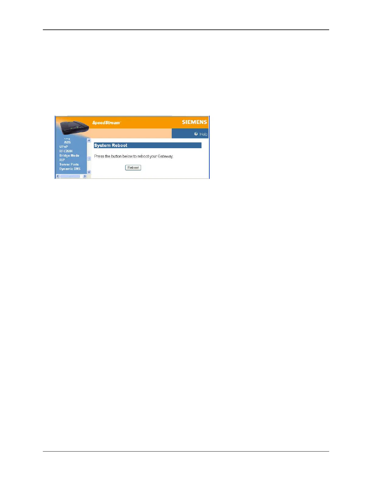 To reboot the Router, select Tools>Reboot from the left navigation pane of the Web interface. This